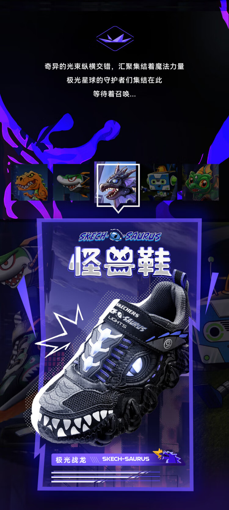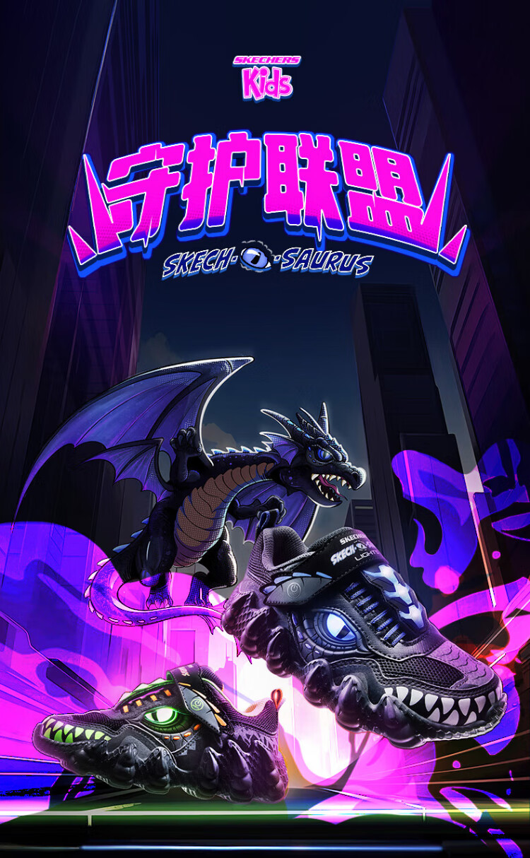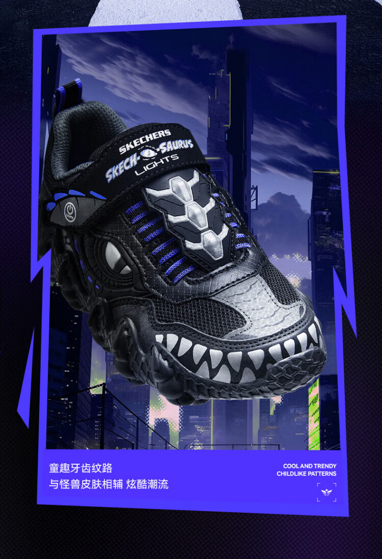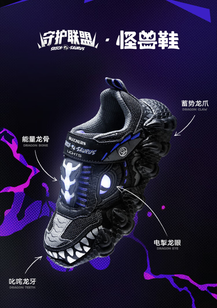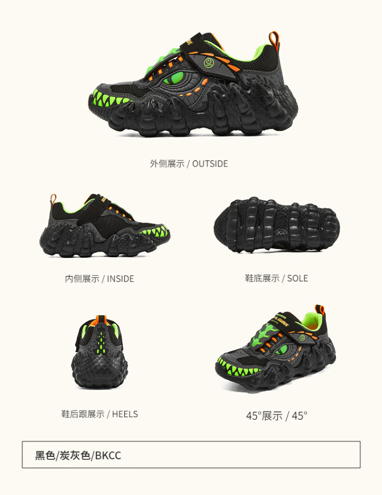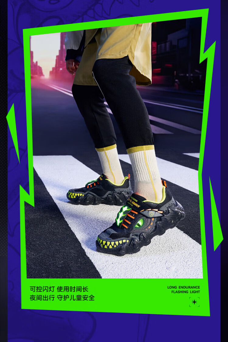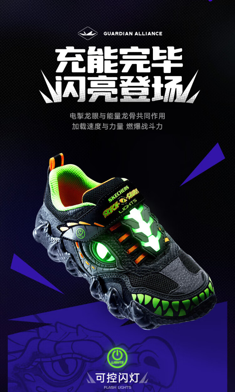 Skechers Skechers self-operated boys' monster Velcro flashing boys' sports shoes children's running shoes 400112L