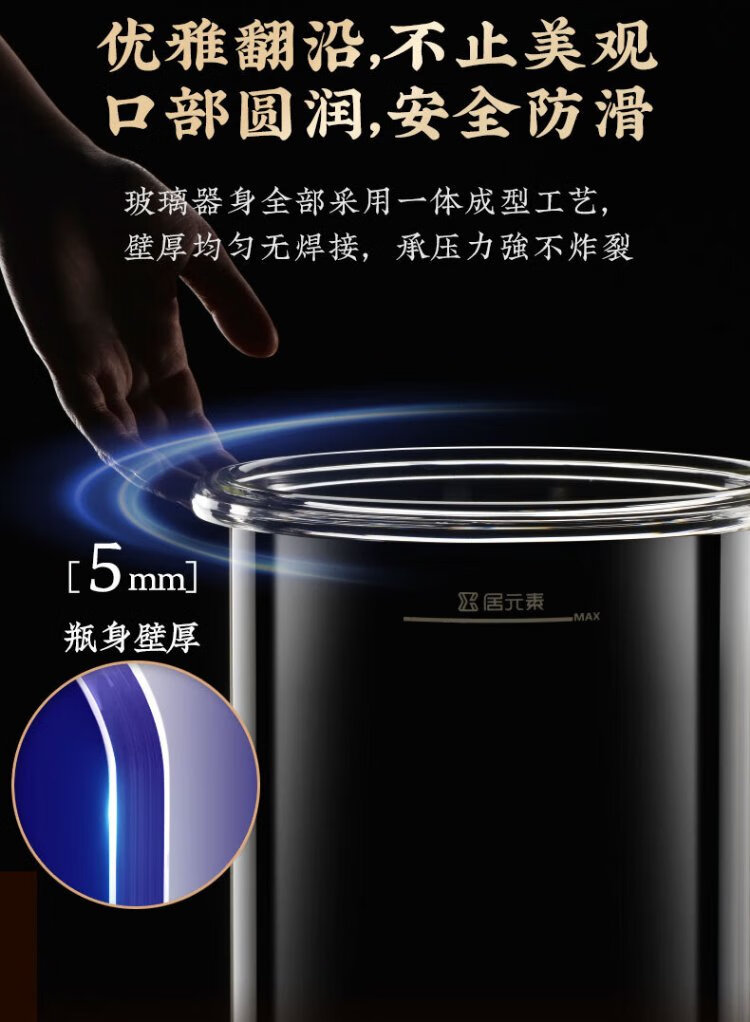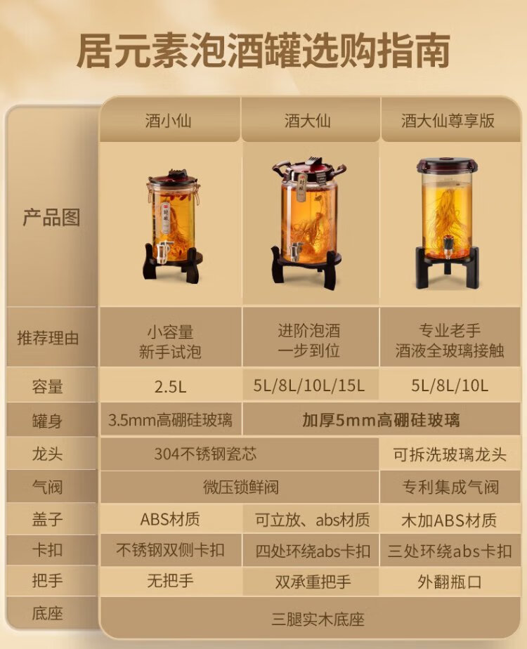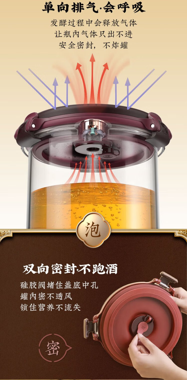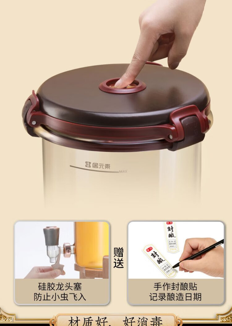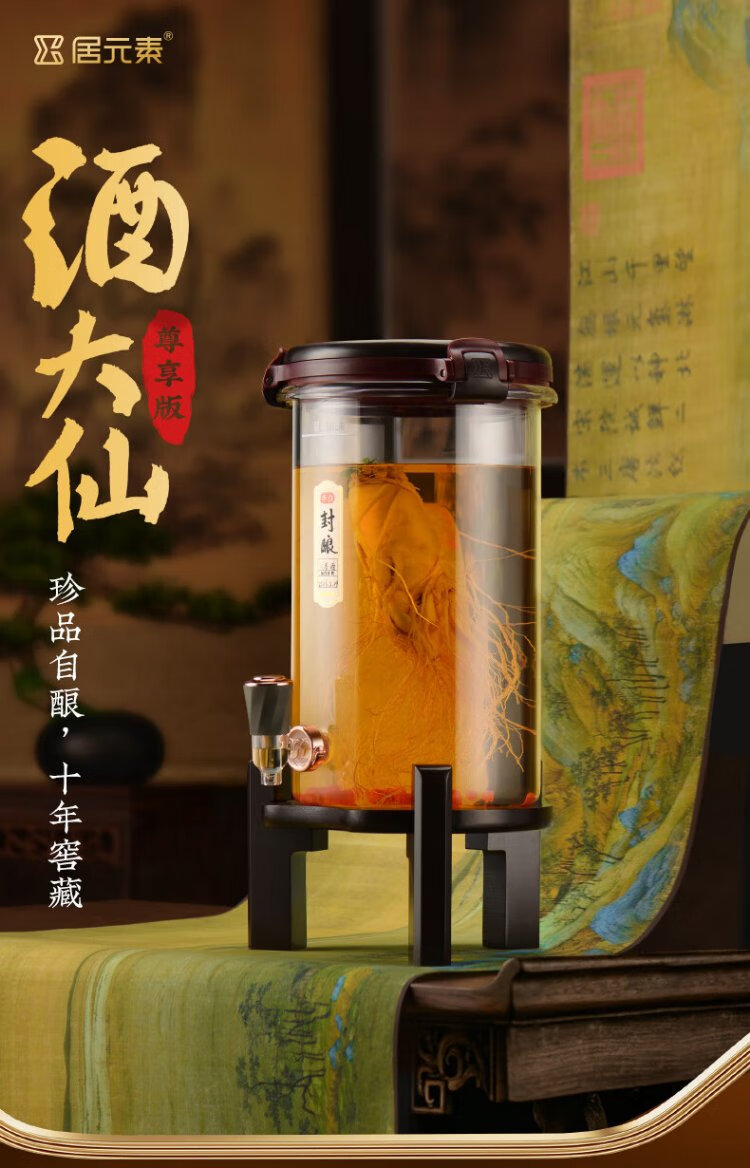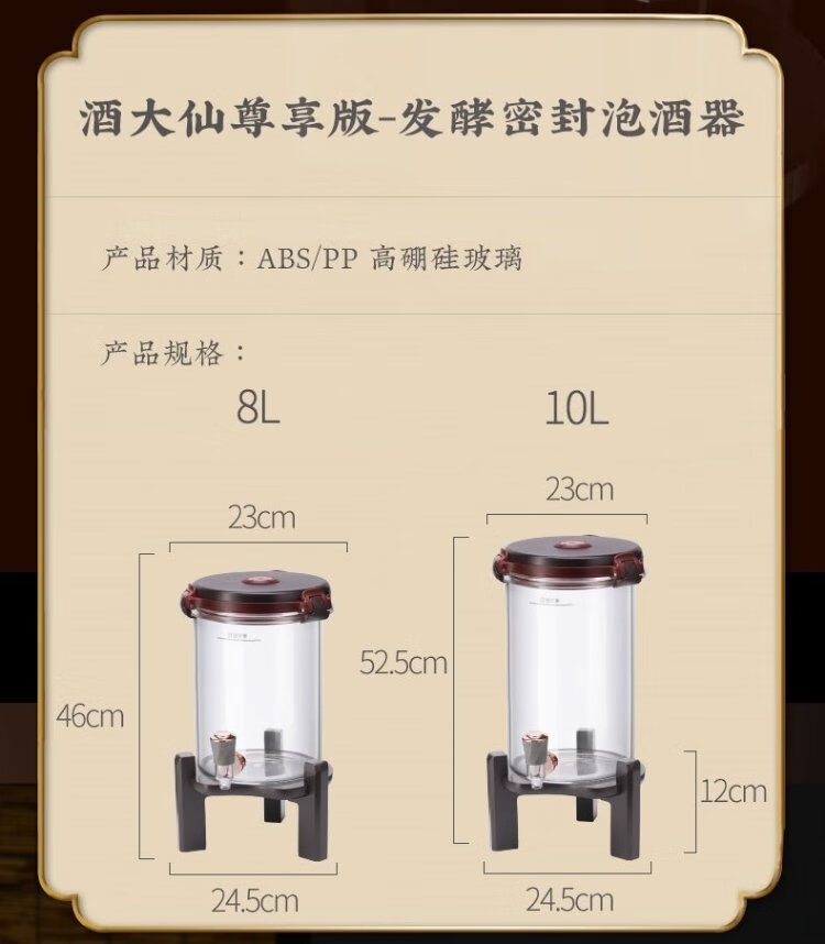 Ju element high-end thickened heat-resistant glass sealed wine container solid wood lid glass faucet + solid wood base 10L