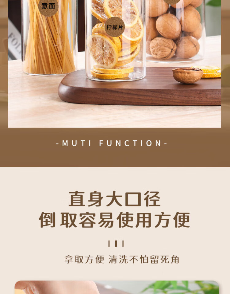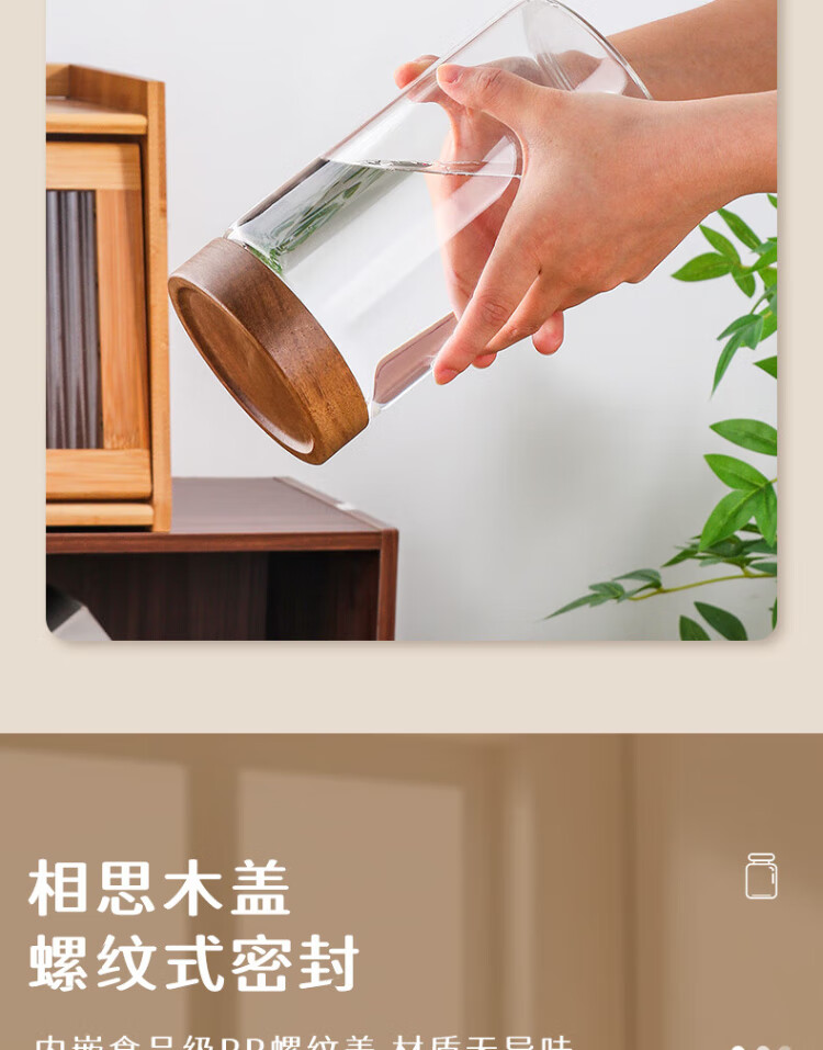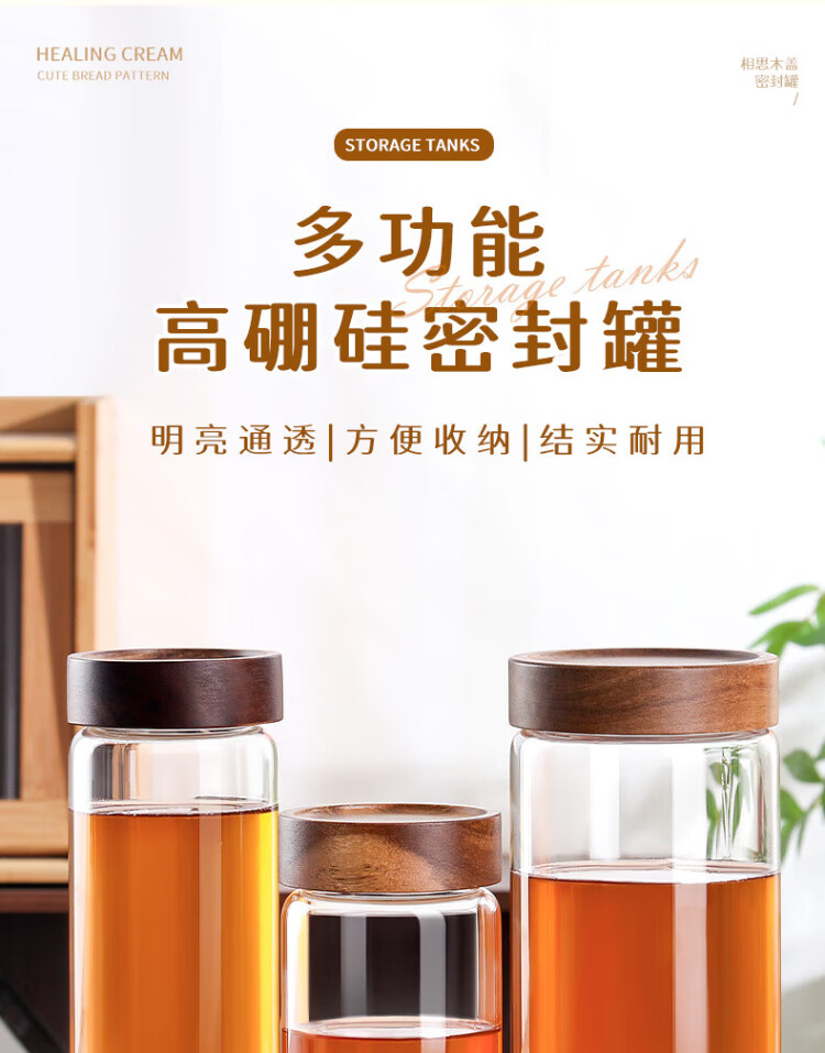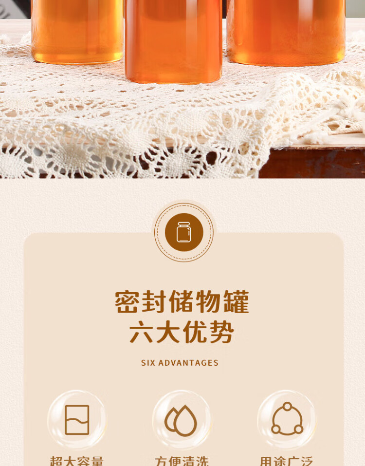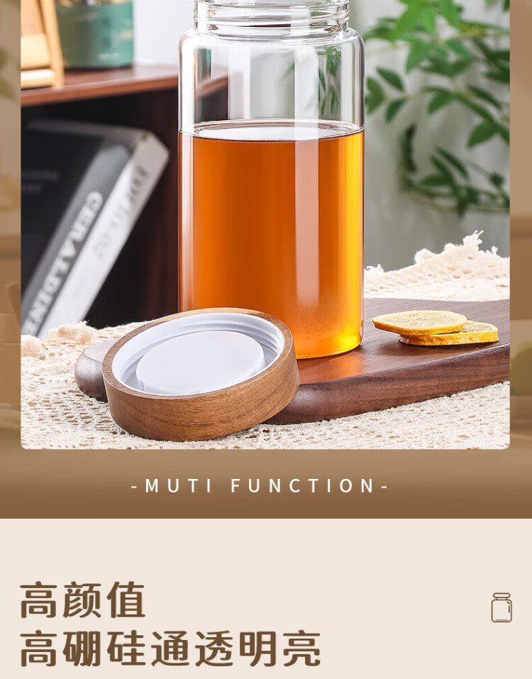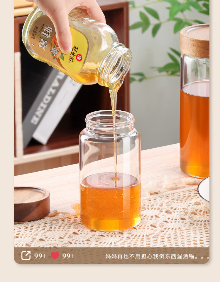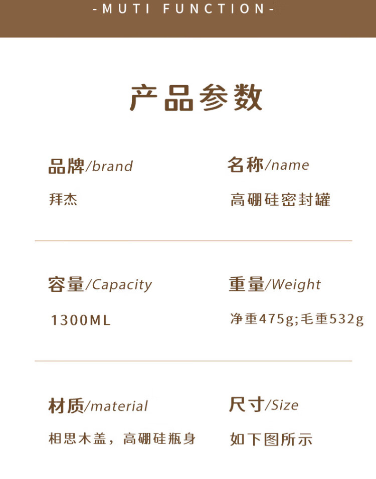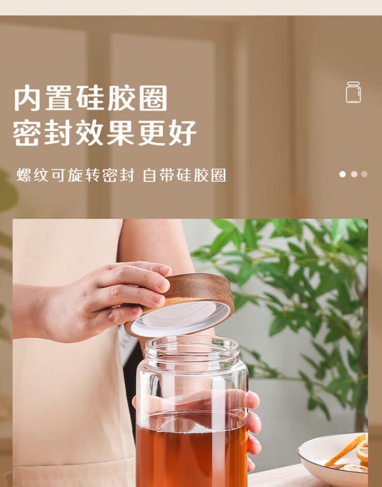 Baijie sealed jar glass bottle food grade honey jar coffee tea jar dry goods storage bottle spice storage box 1300ml