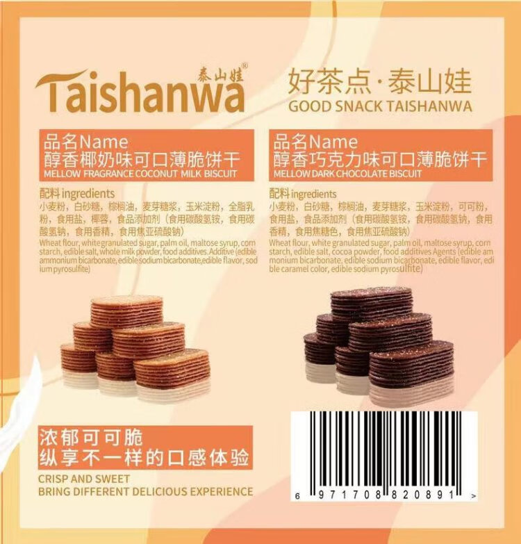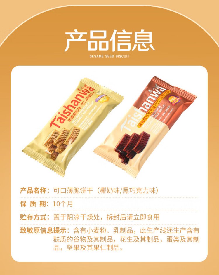 Taishanwa Crackers 650g Internet celebrity pancakes coconut milk chocolate flavor breakfast snack snacks afternoon tea