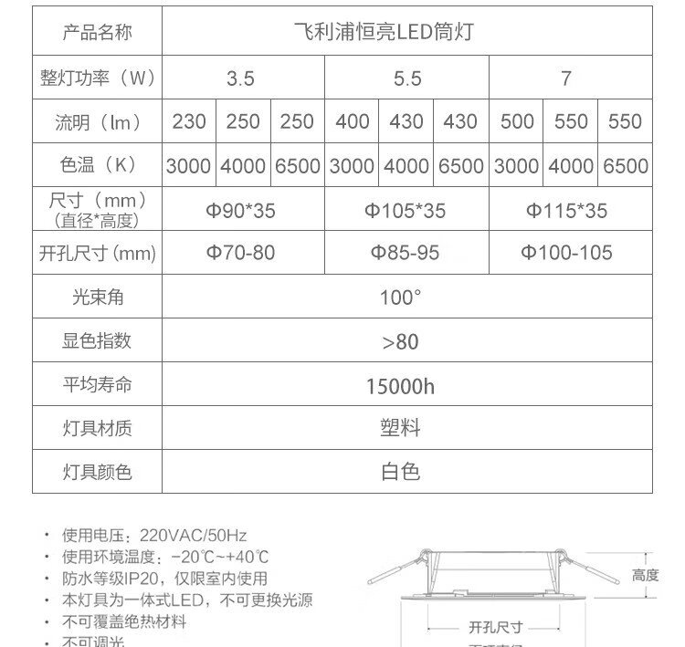 Philips (PHILIPS) constant brightness series LED downlight embedded ceiling downlight 3 inches 5.5W opening 85-95mm warm white light (4000K)