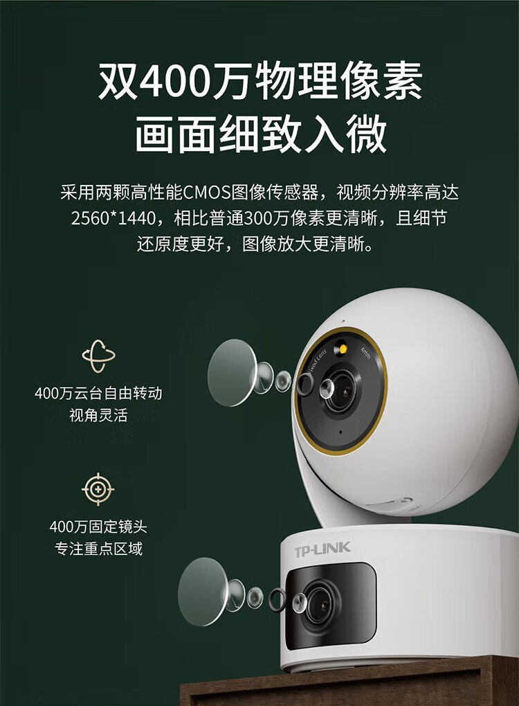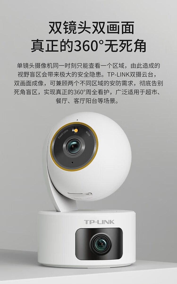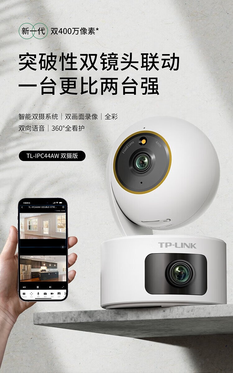 TP-LINK dual-camera 8 million smart camera home monitor 360-degree night vision panoramic wireless mobile phone remote baby pet indoor security IPC44AW dual-camera version