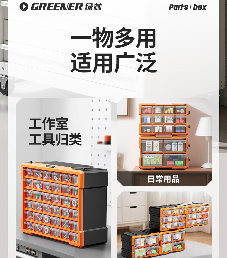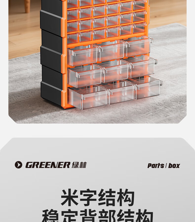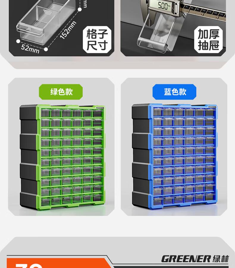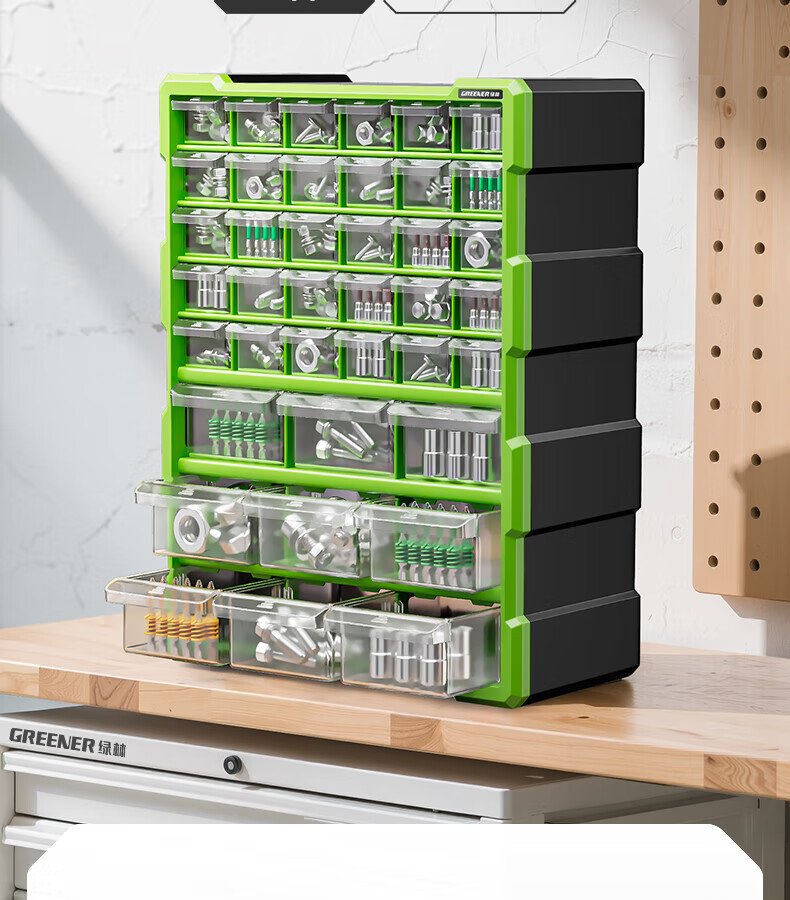 GREENER 60-grid storage box, divided tool box, parts box, building block parts box, wall-mounted drawer-type household parts box