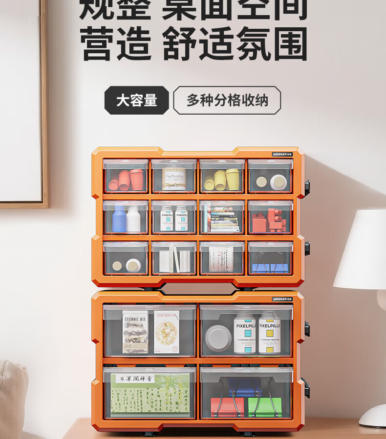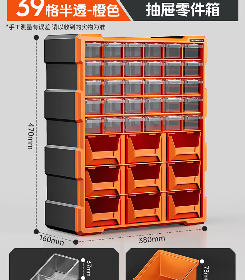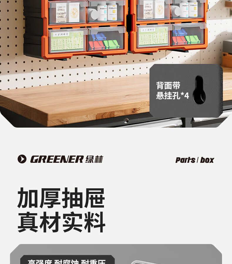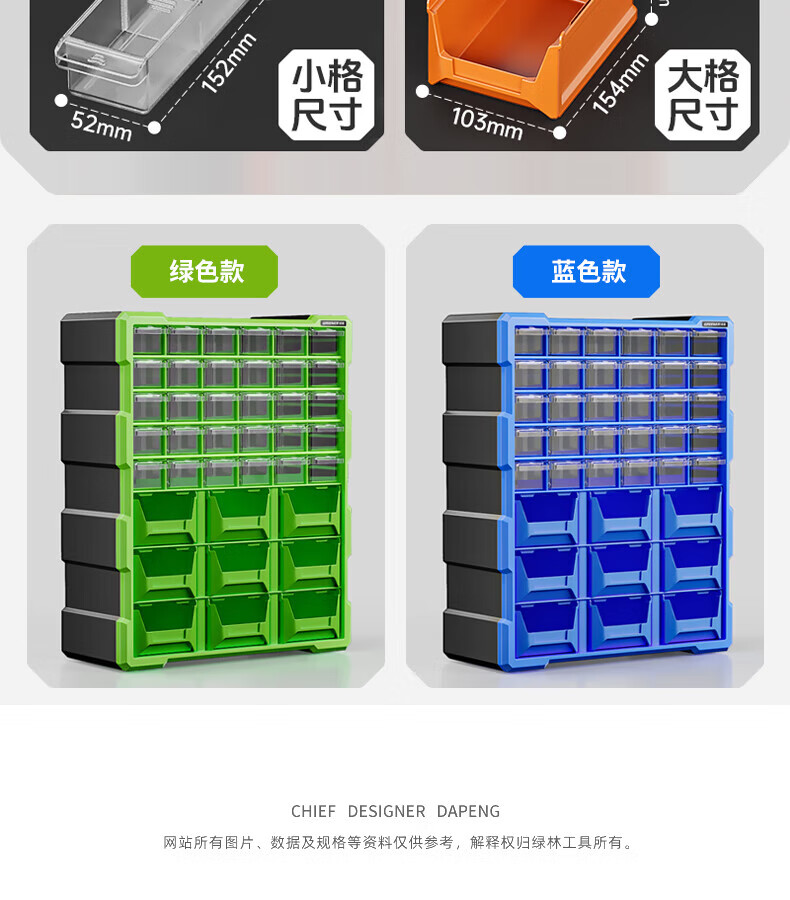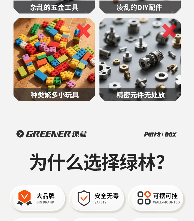 GREENER 60-grid storage box, divided tool box, parts box, building block parts box, wall-mounted drawer-type household parts box