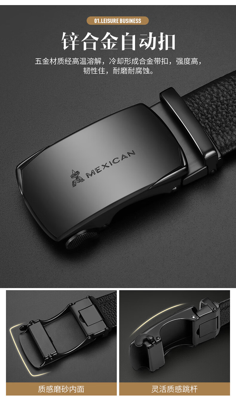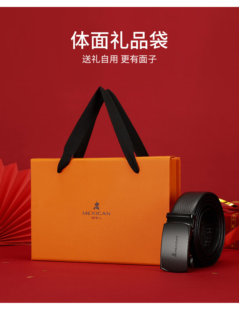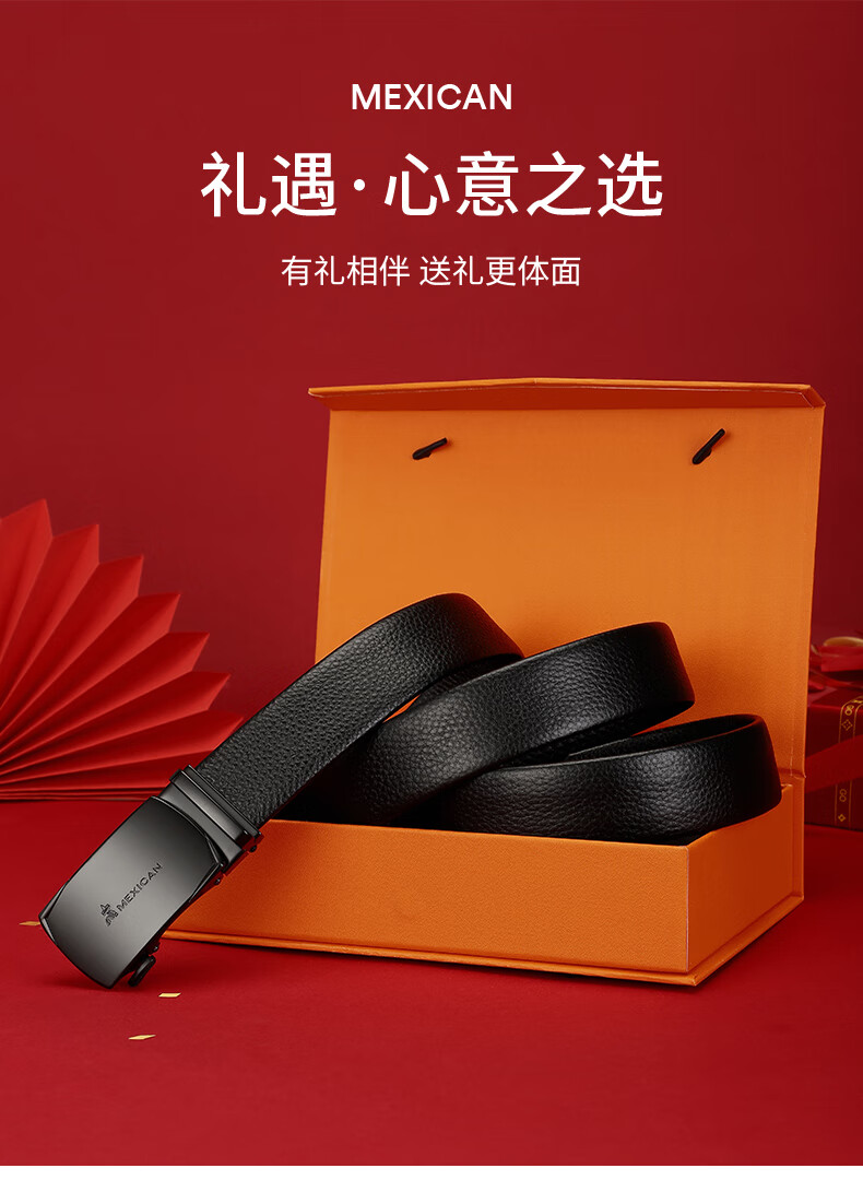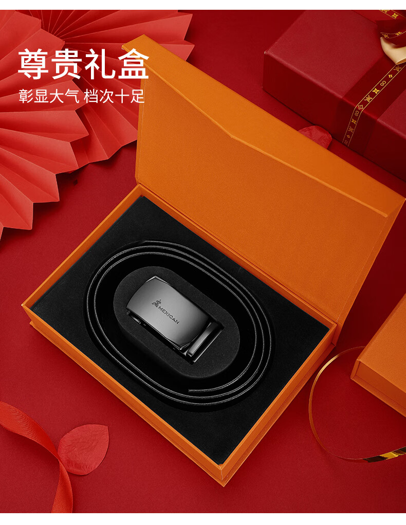 Scarecrow men's belt with automatic buckle, genuine first-layer cowhide belt, high-end gift box, birthday gift for dad, husband