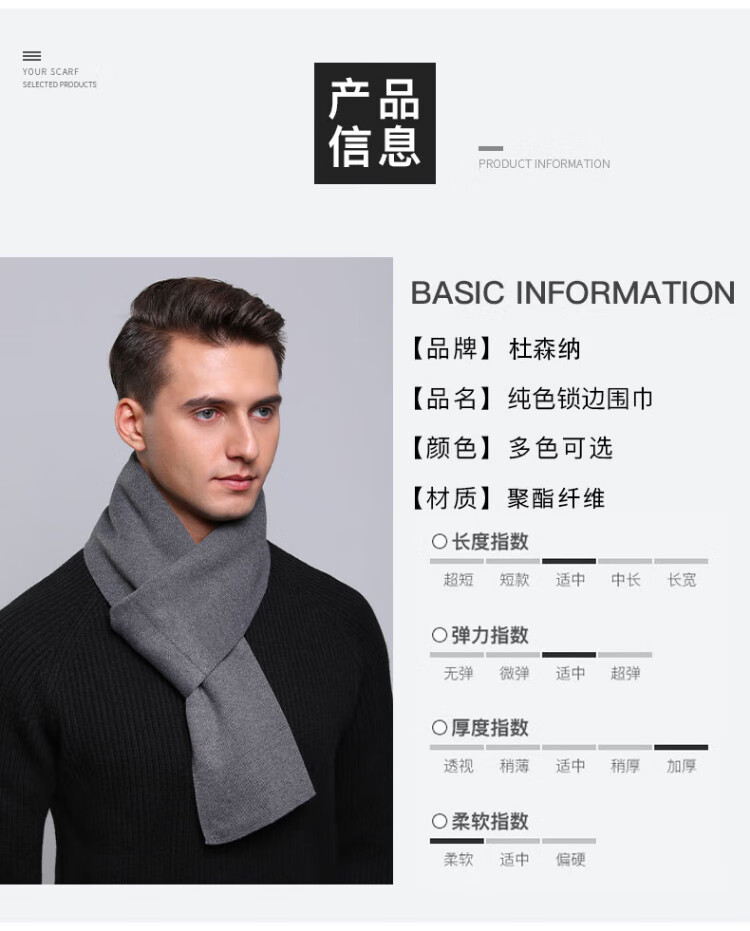 DUSENNA gift box scarf men's winter solid color versatile plus velvet thickened cold-proof and warm scarf men's scarf birthday gift