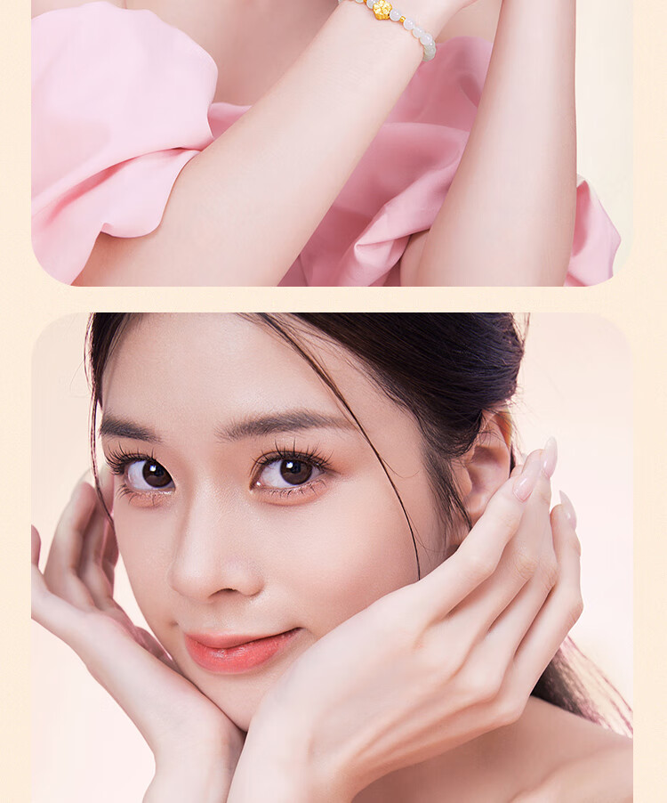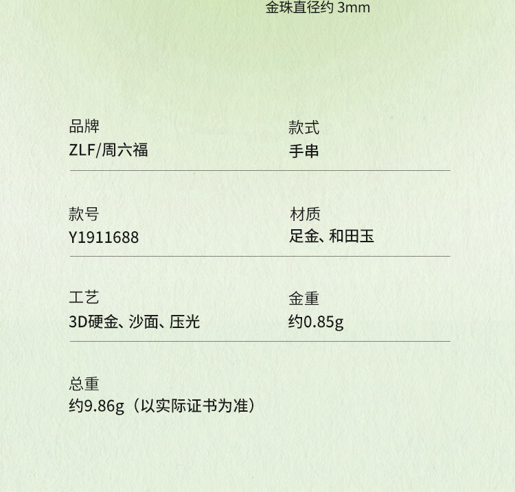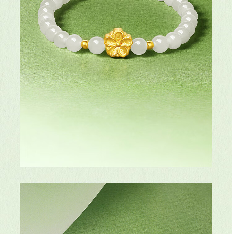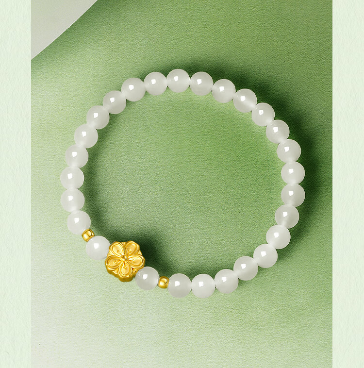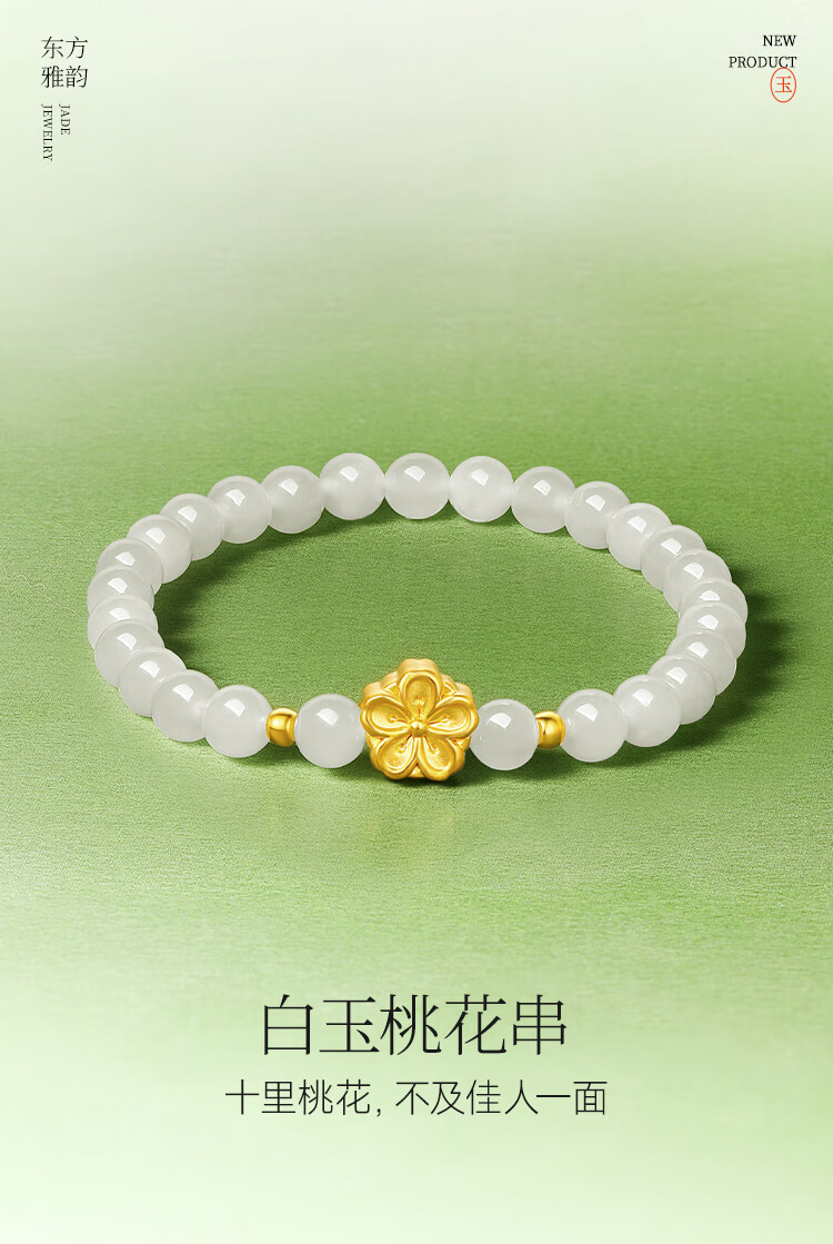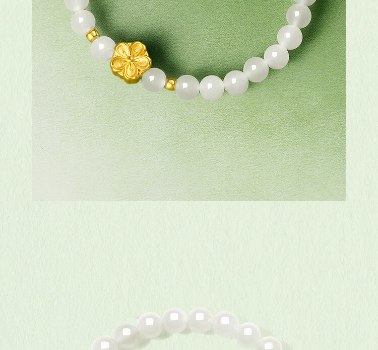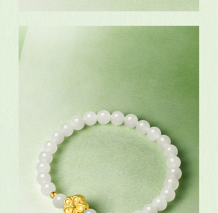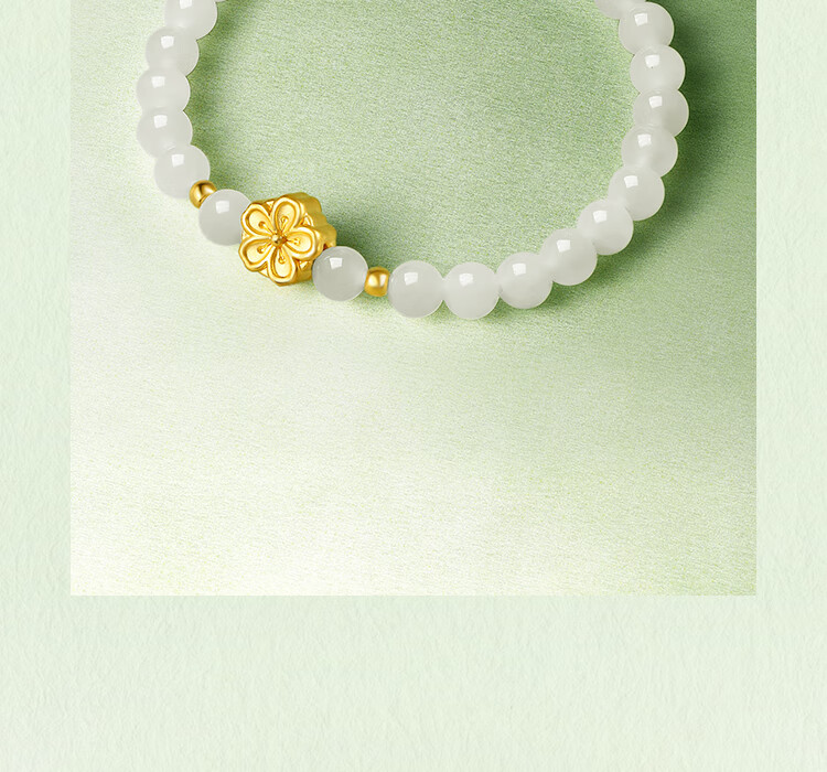 Saturday Blessing 3D Hard Gold Pure Gold White Jade Peach Blossom String White Jade and Tian Jade Bracelet for Women Y1911688 17cm New Year Gift