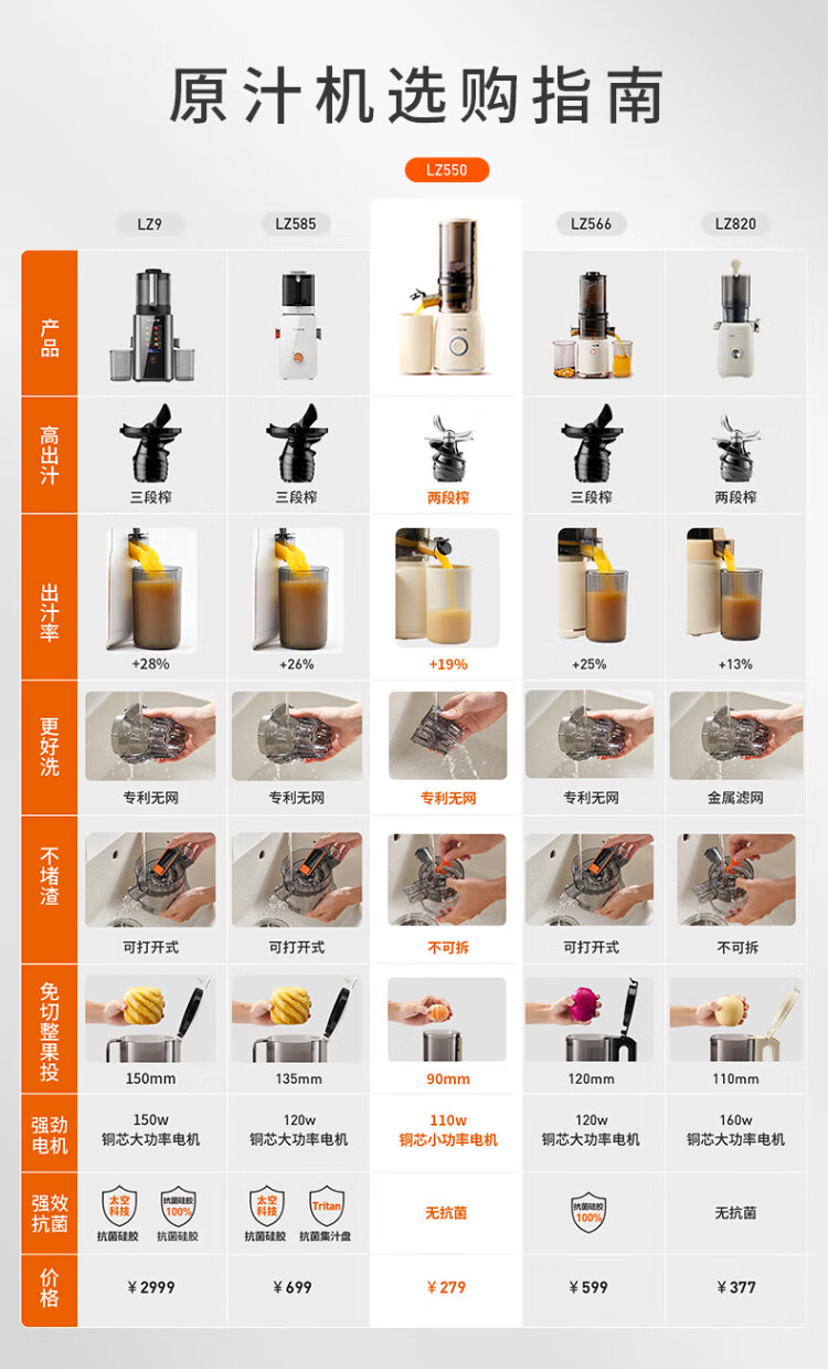 Joyoung Government Subsidy NFC Juicer Original Juicer Household Multifunctional Electric Ice Cream Machine Fully Automatic Cold Pressed Juice Fruit and Vegetable Machine Residue Juice Separator Z5-LZ550