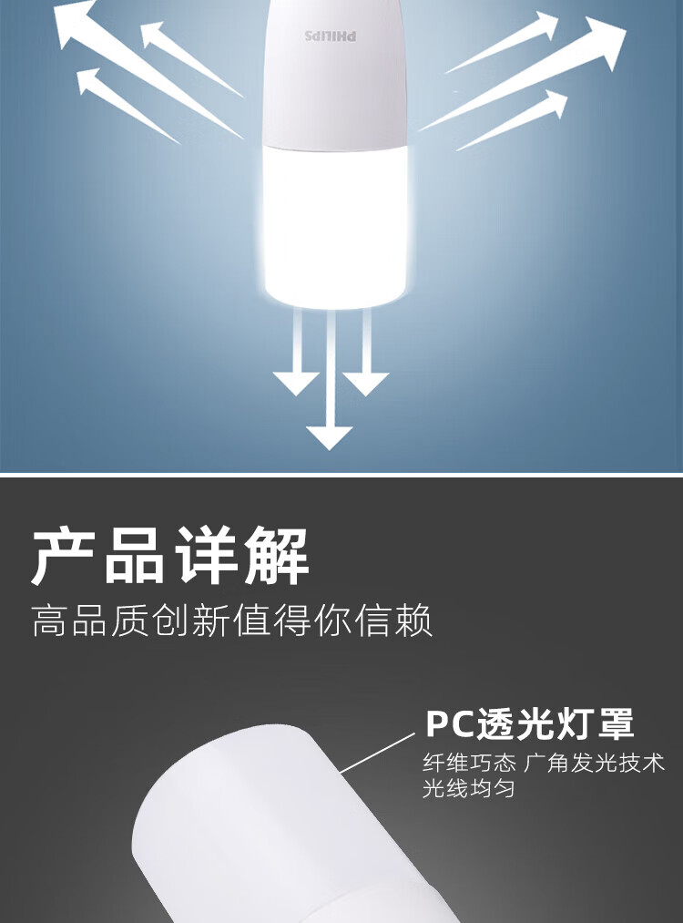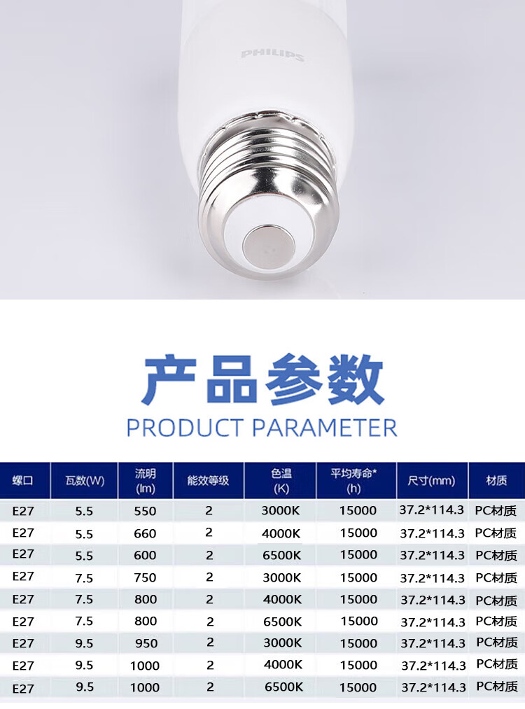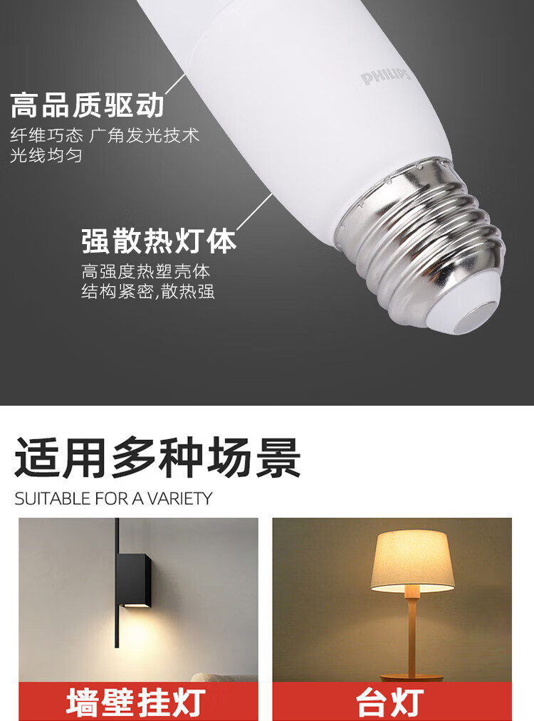 Philips (PHILIPS) constant light LED small column bulb columnar LED bulb E27 screw socket 9.5W white light (6500K)