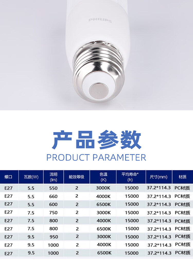 Philips (PHILIPS) constant brightness LED small column bulb columnar LED bulb E27 screw socket 7.5W white light (6500K)