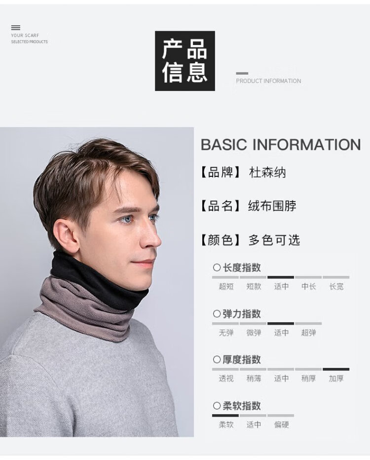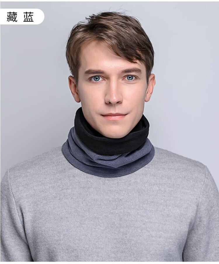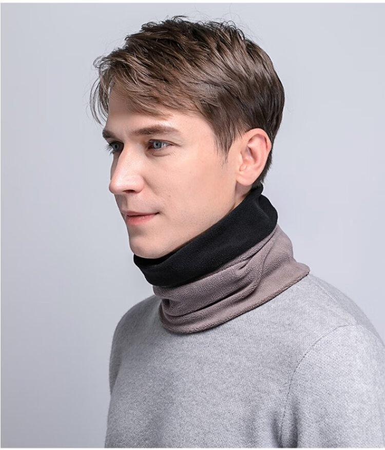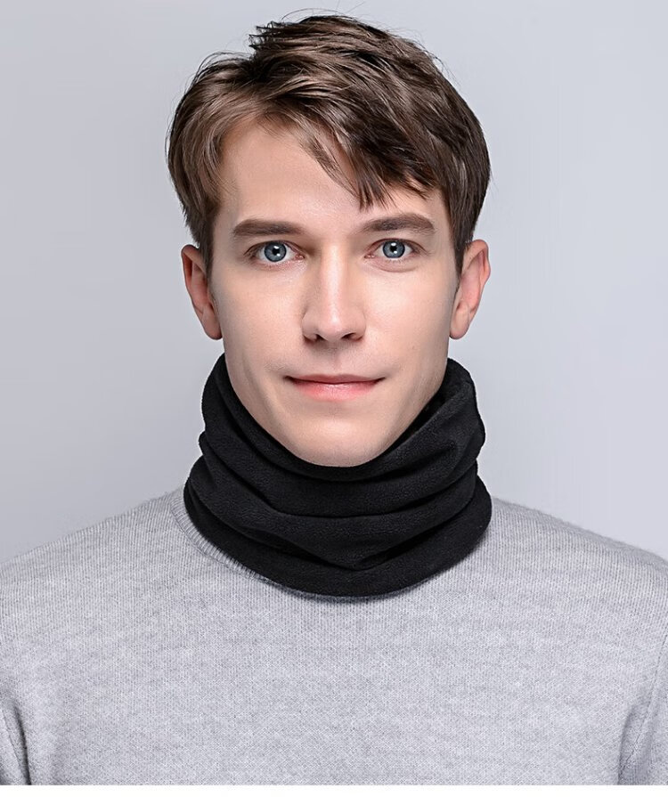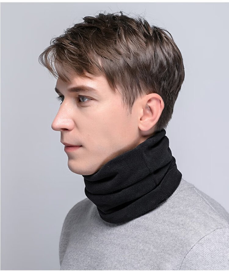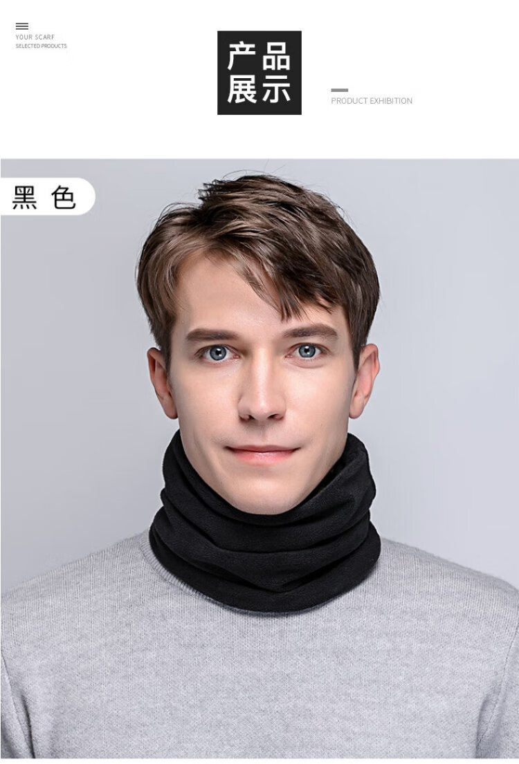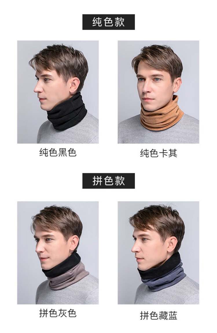 DUSENNA scarf men's winter color matching thickened warm neck hood hood dual-purpose men's scarf men's solid color black