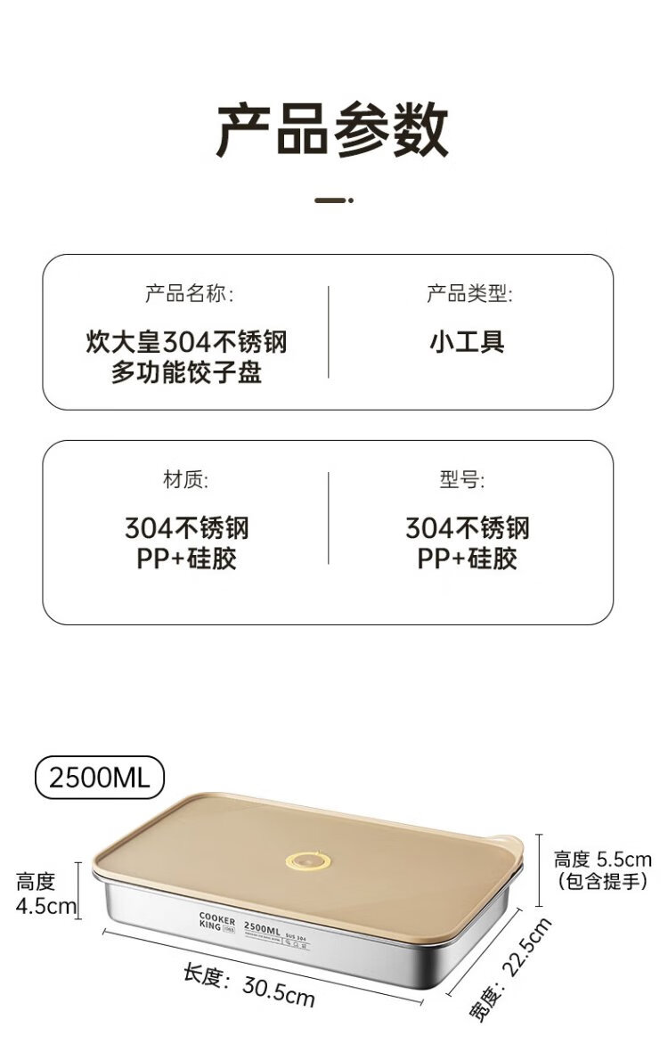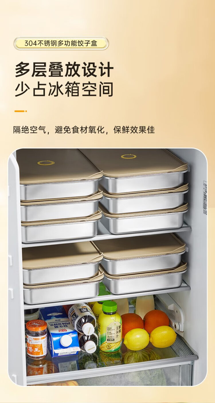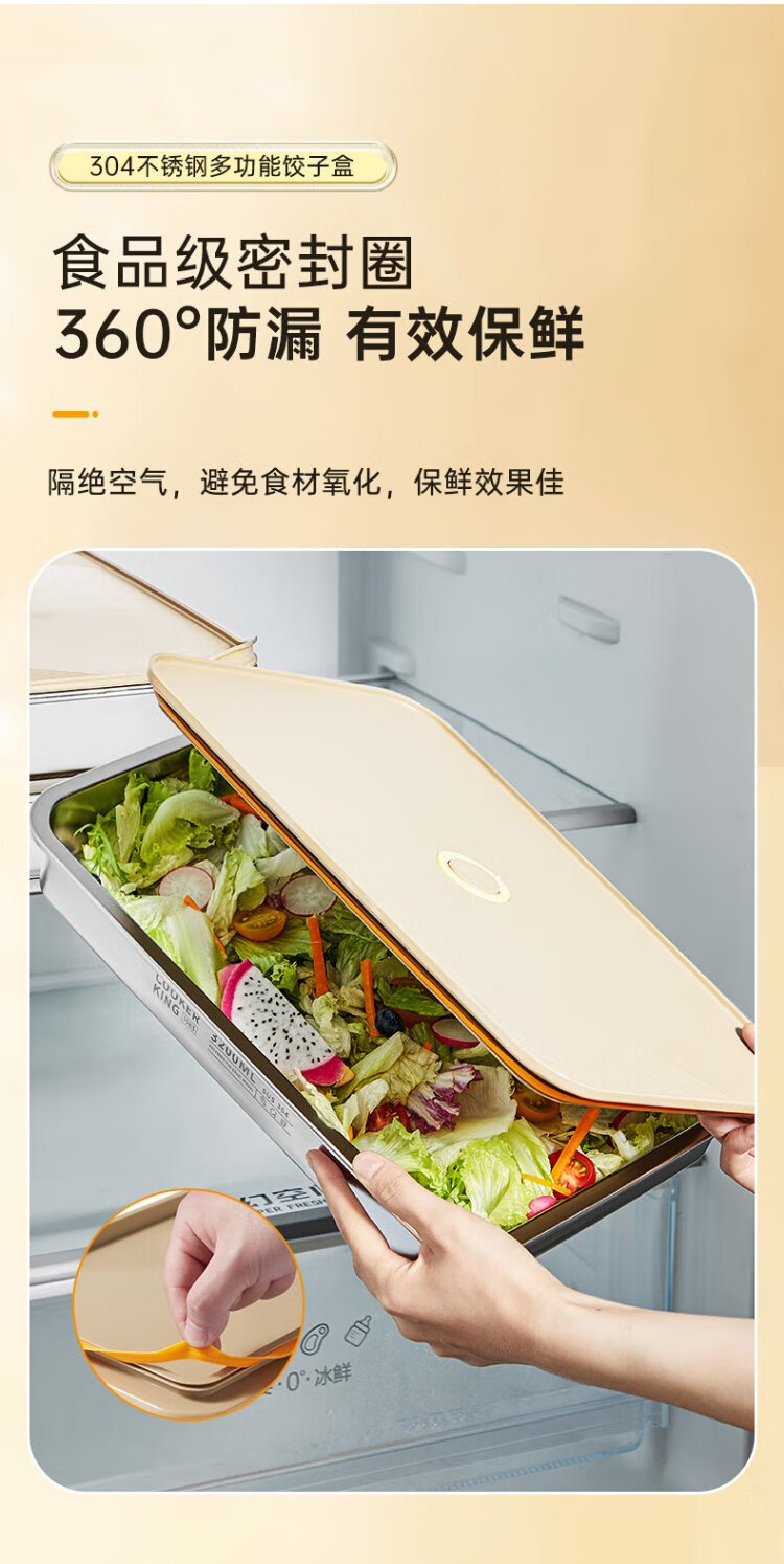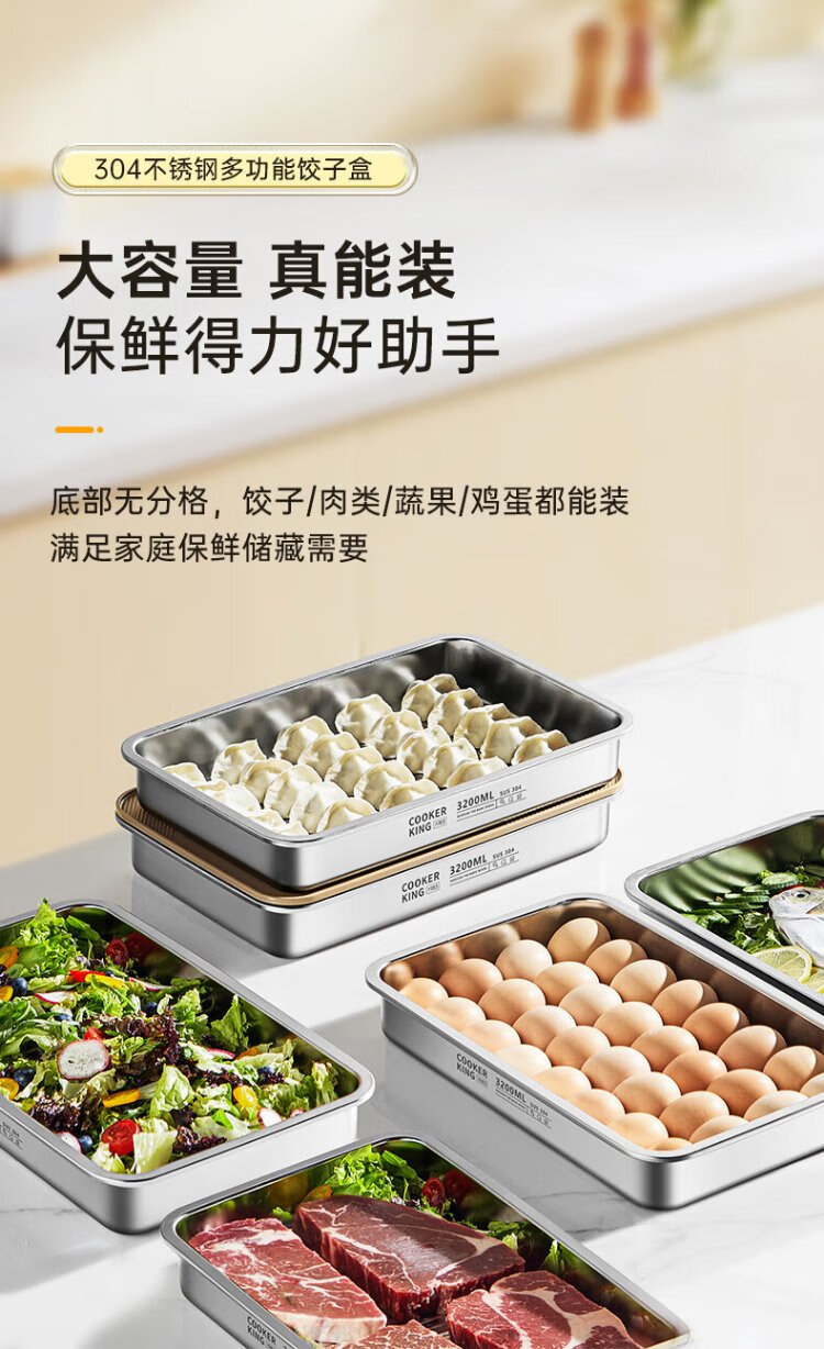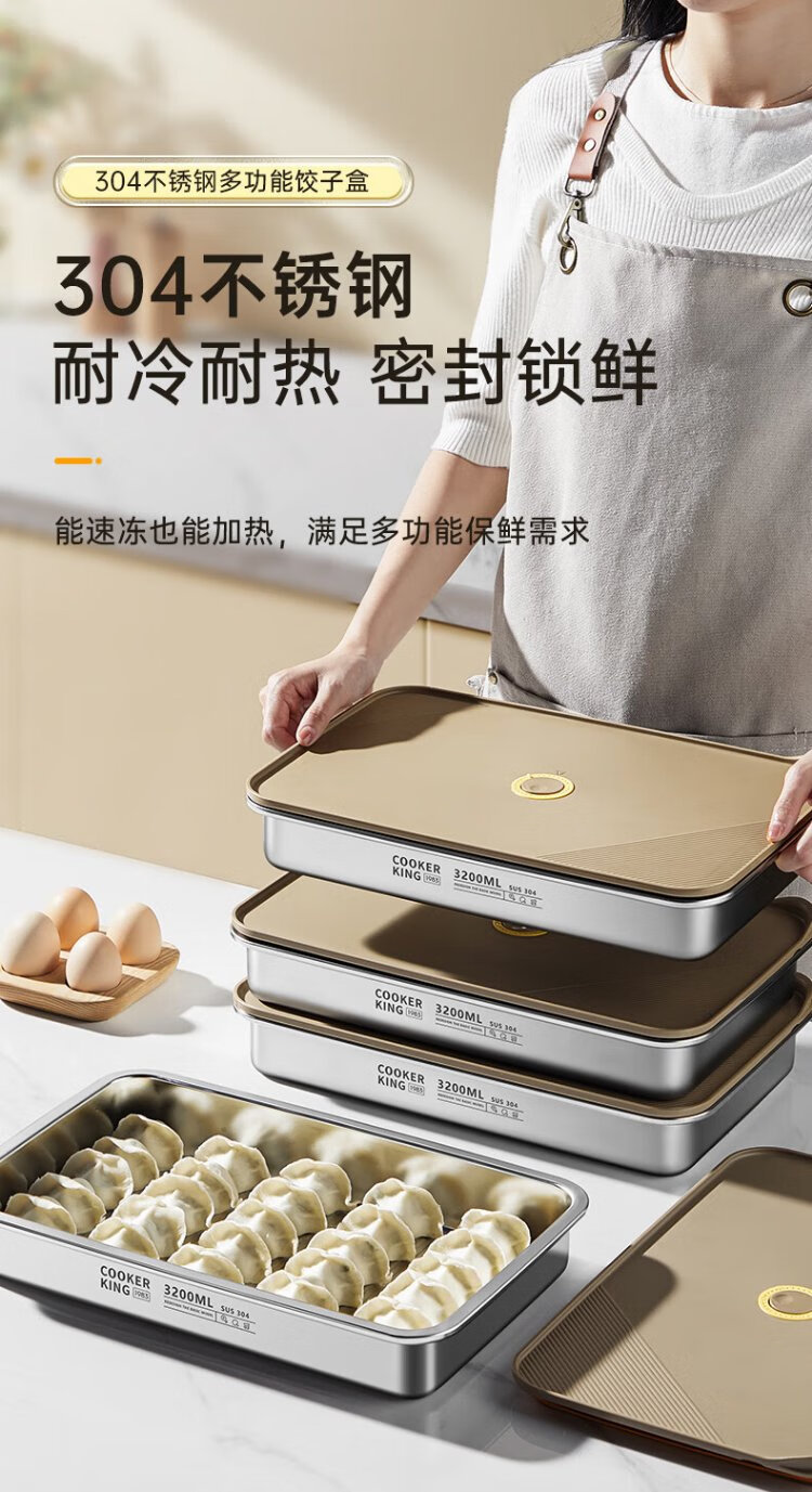 Cuidahuang dumpling box 304 stainless steel crisper refrigerator storage box large capacity dumpling wonton box 3200ml