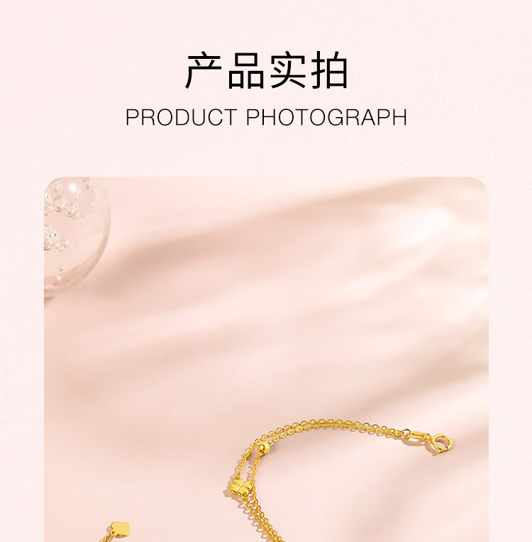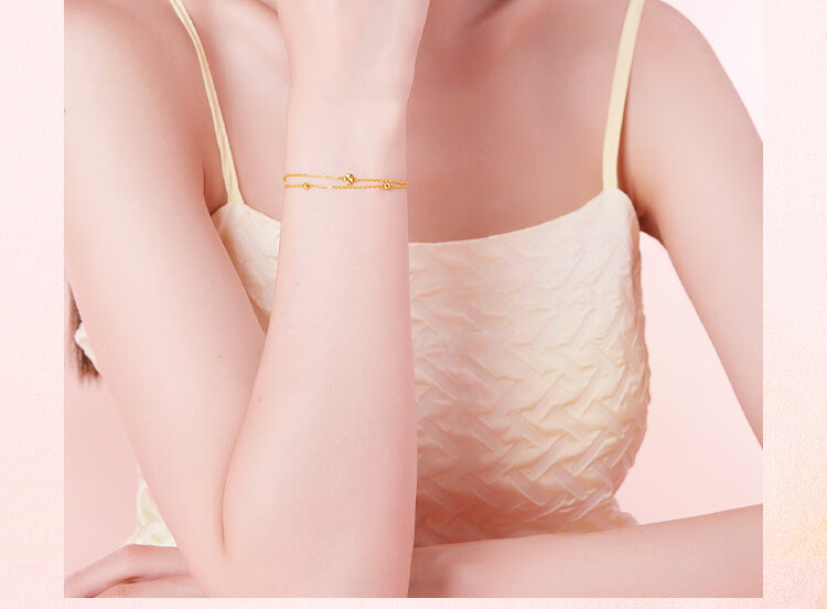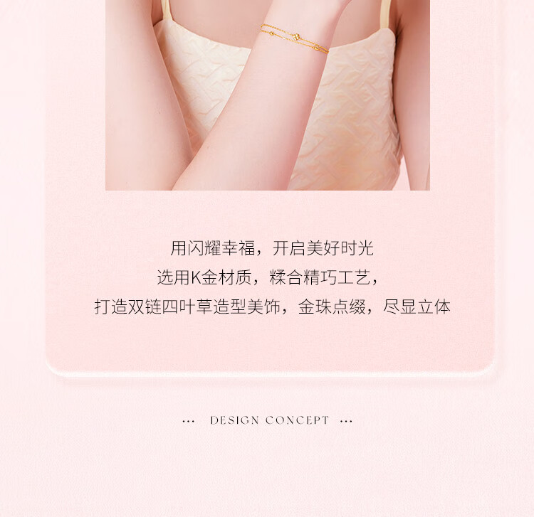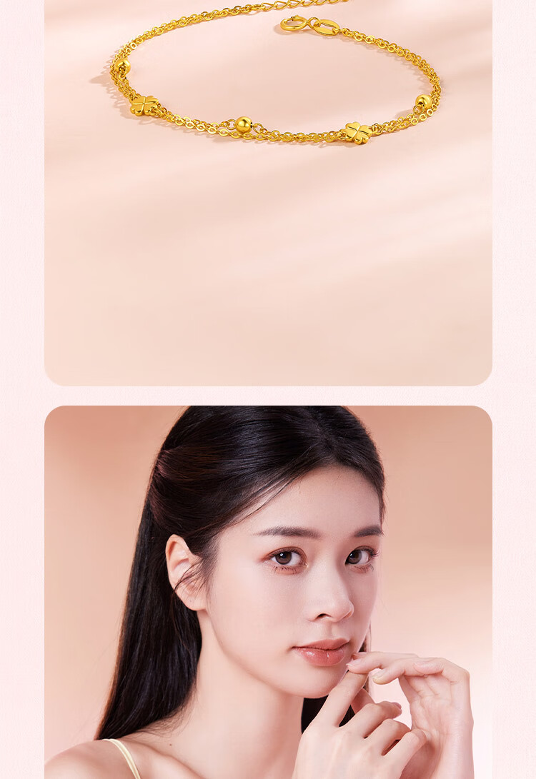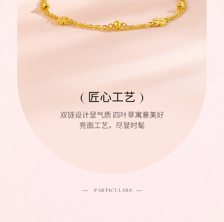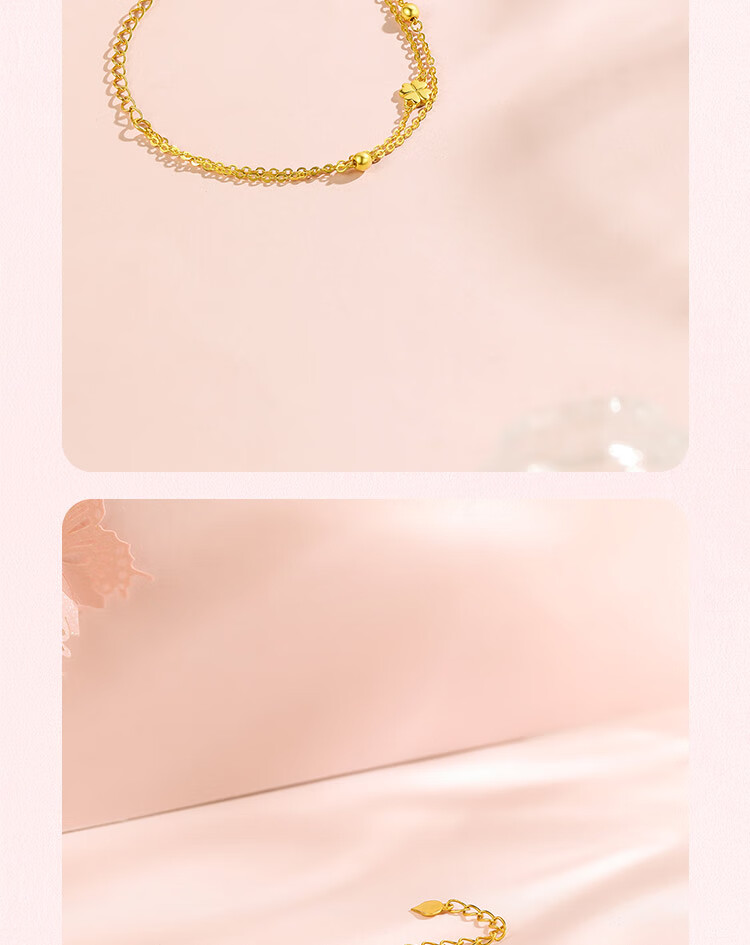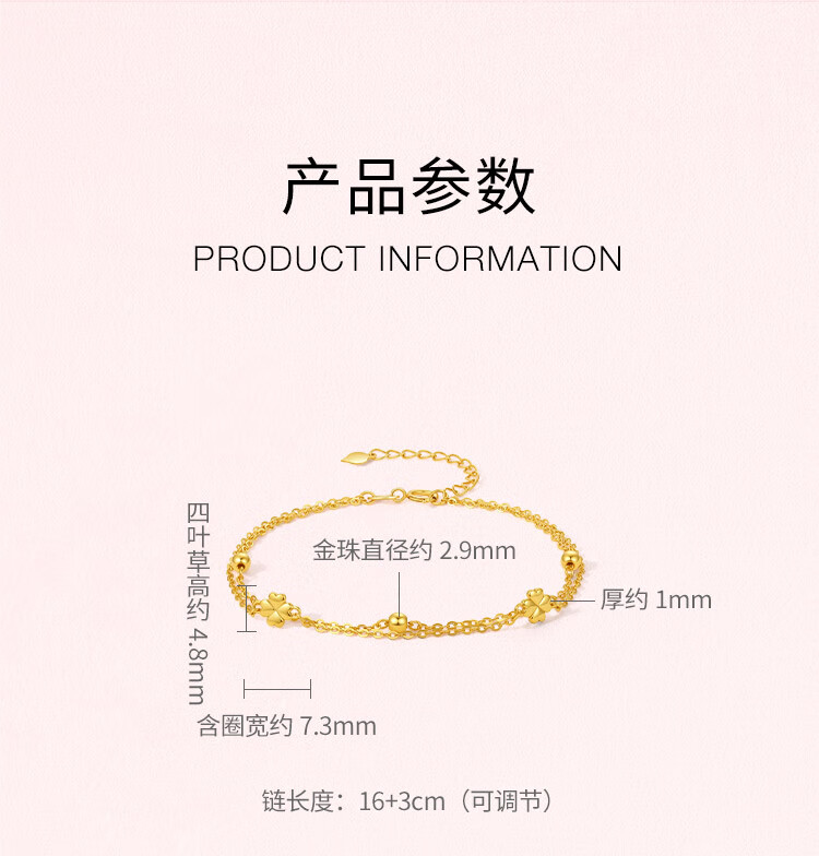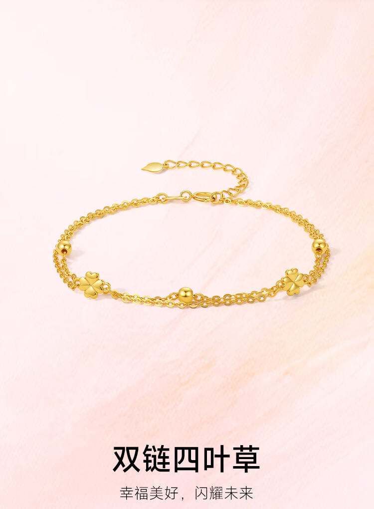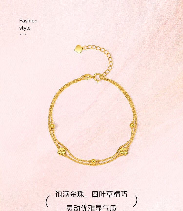 Saturday Fortune Yellow 18K Gold Bracelet for Women Double Chain Four Leaf Clover Bracelet Birthday Gift C0711961 16+3cm