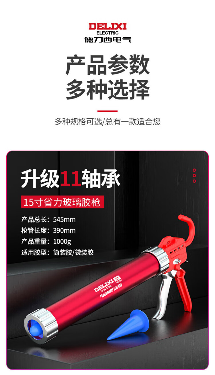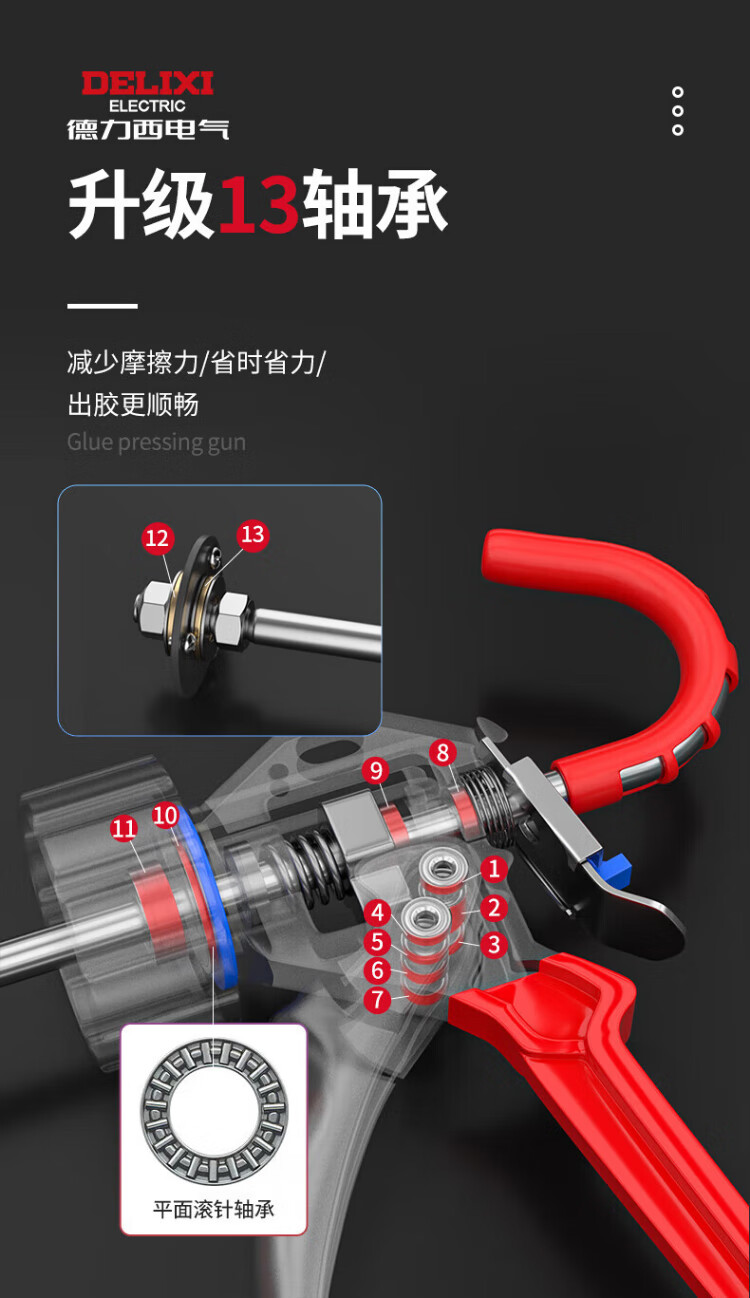 Delixi glass glue gun labor-saving glass glue gun sealed structure glue gun 15 inches 5-piece set