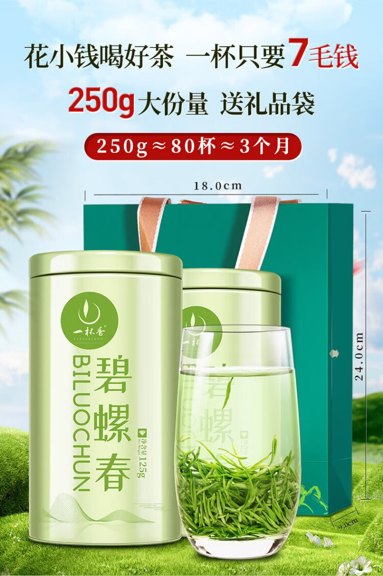 A cup of fragrant tea leaf green tea Mingqian Biluochun 250g 2025 new tea gift box gift for self-drinking tea bag