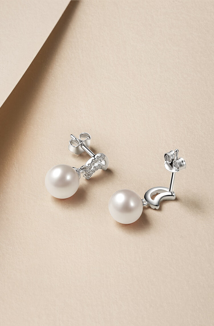 Saturday Fortune S925 Silver Pearl Stud Earrings Female Moon Birthday Gift X0911990 Pair