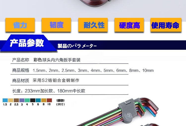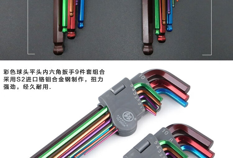 鰰 Fukuoka Tools Hexagonal Wrench Set Ball Head Hexagonal Screwdriver Set Extended L-shaped Bit 9-piece Set