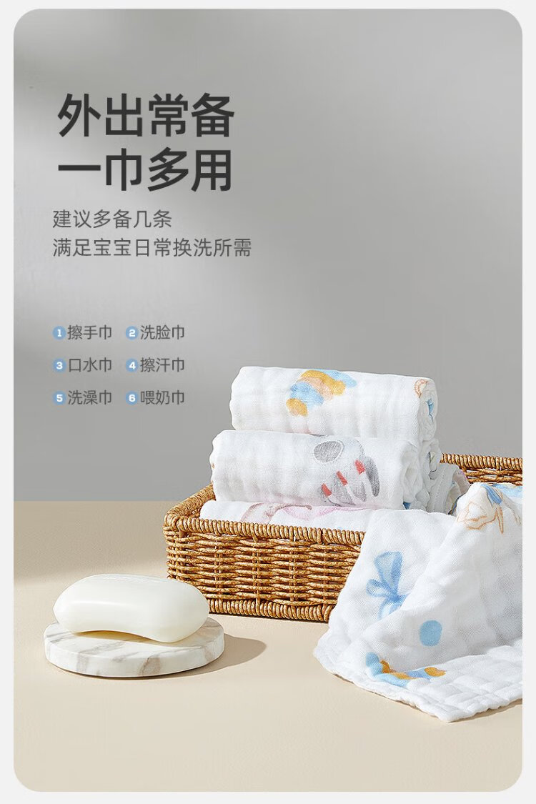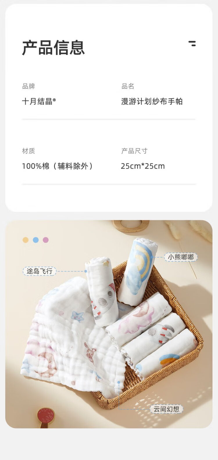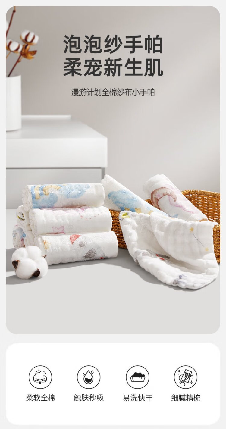 October crystal baby gauze square handkerchief 6 layers 6 pack pure cotton saliva towel super soft and washable roaming plan 25*25