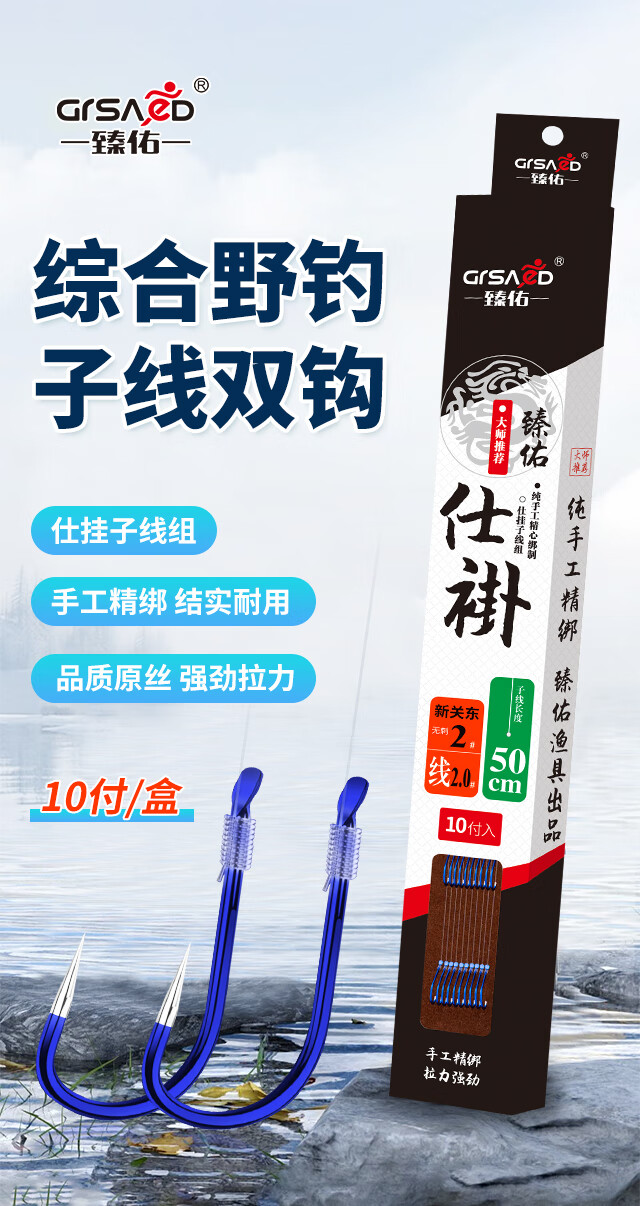 Zhenyou (Grsaed) finished fishhook tied sub-thread double hook Shi hanging sub-thread set fishhook platform fishing line Iseni Barbed No. 5.0