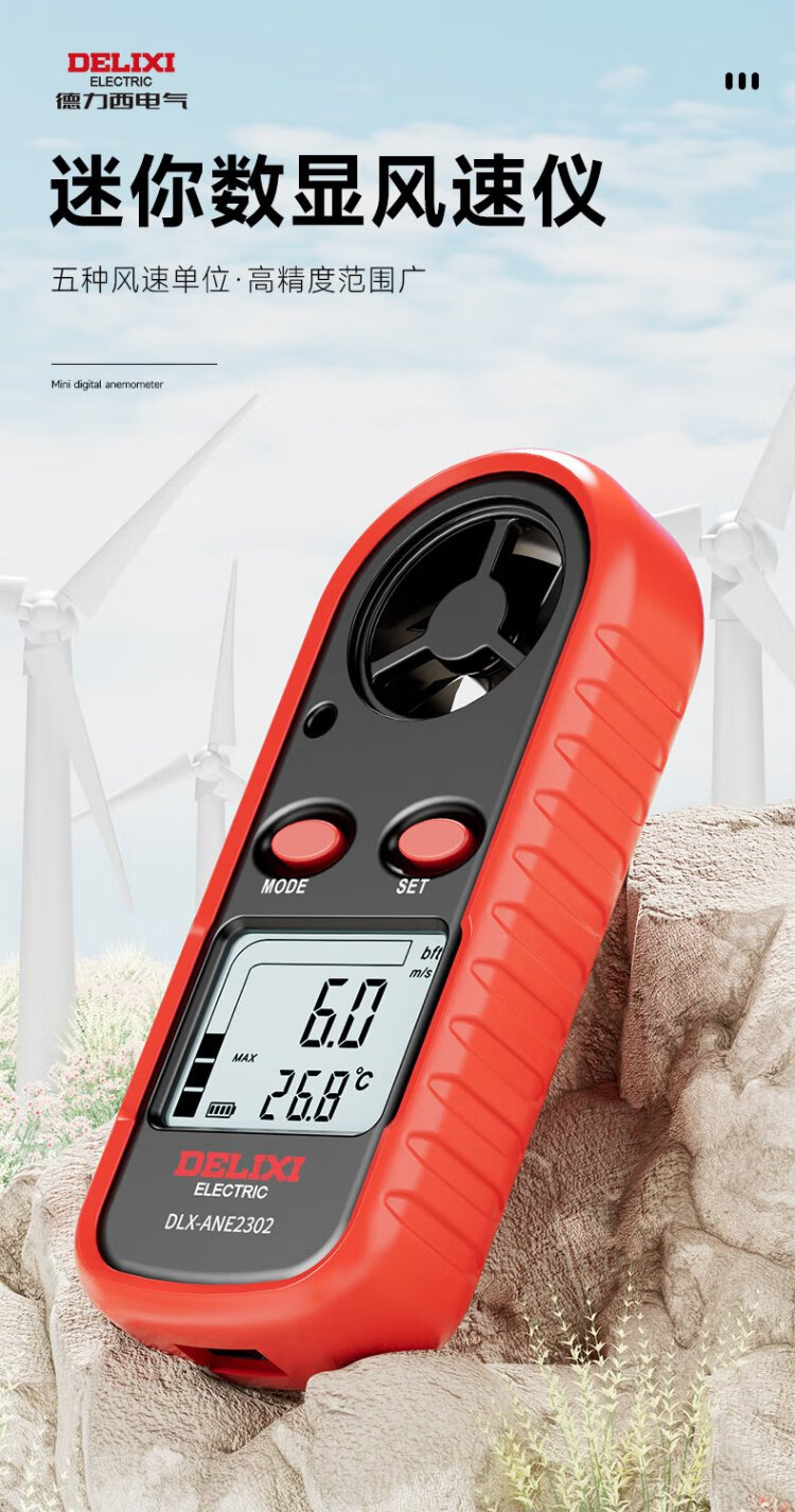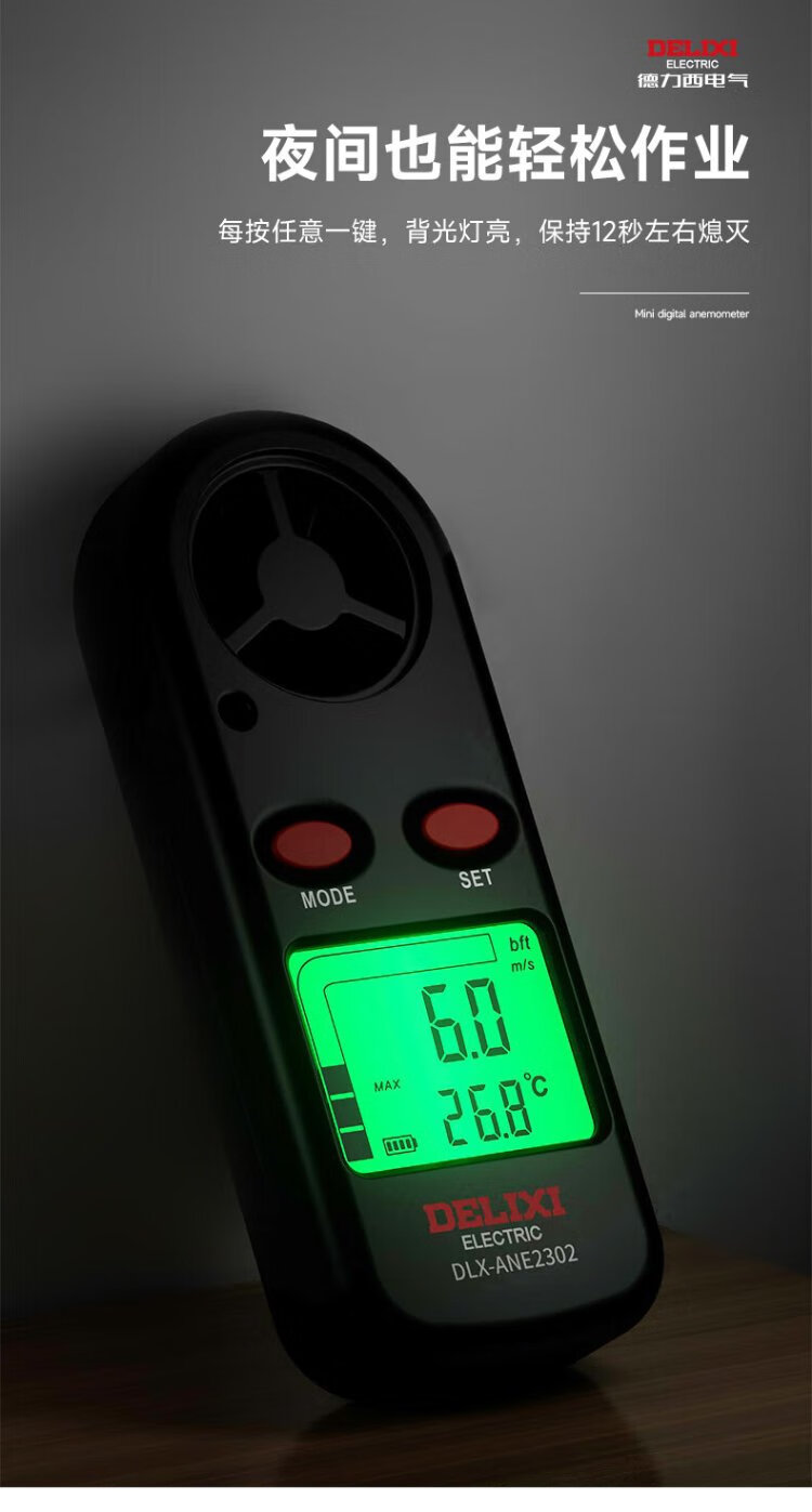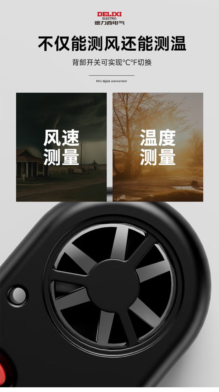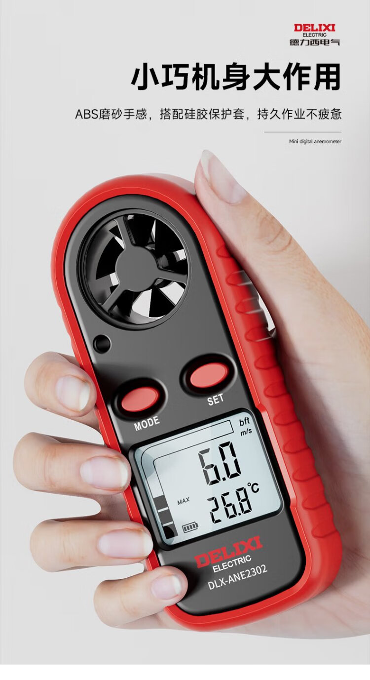 Delixi Electric digital anemometer mini wind speed meter handheld wind meter high-precision air volume meter wind speed sensor
