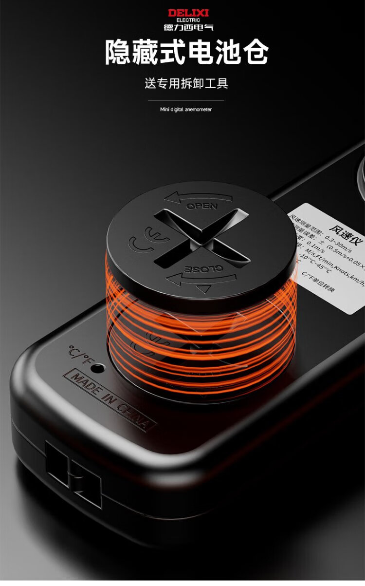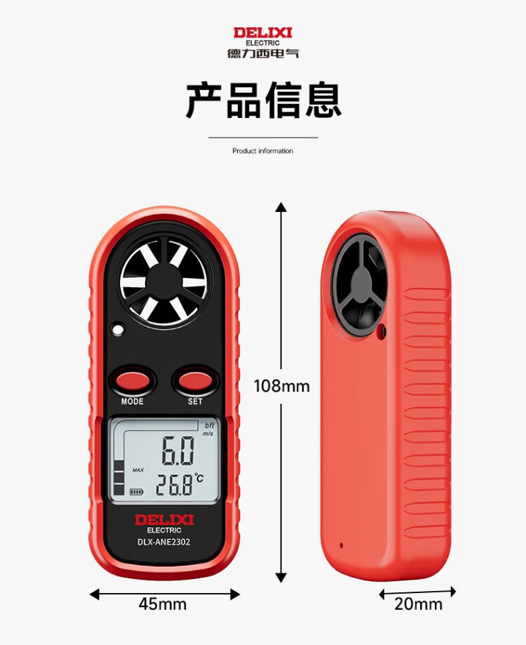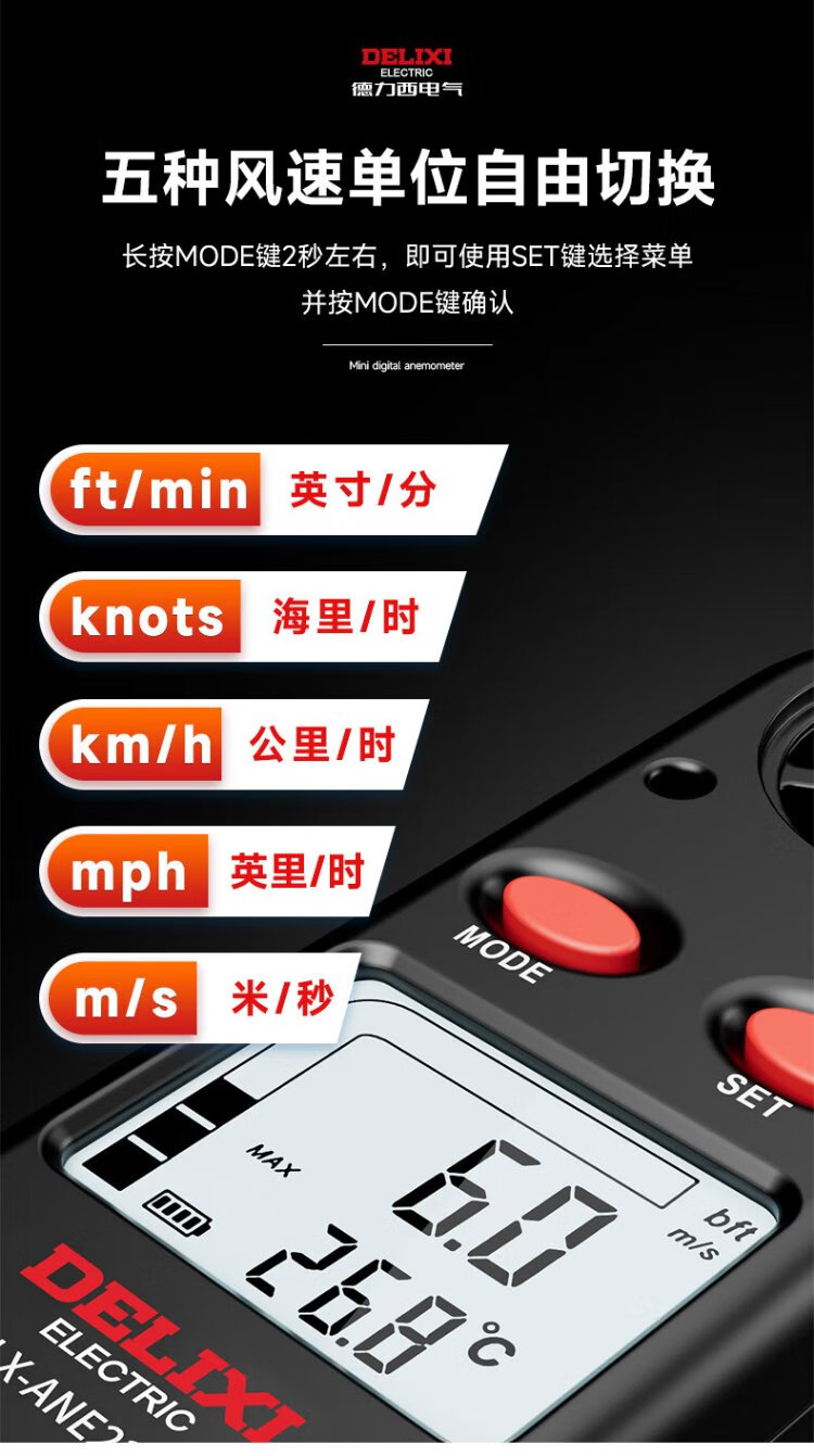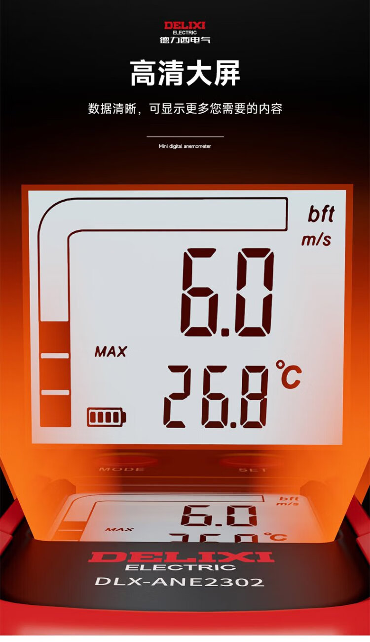 Delixi Electric digital anemometer mini wind speed meter handheld wind meter high-precision air volume meter wind speed sensor