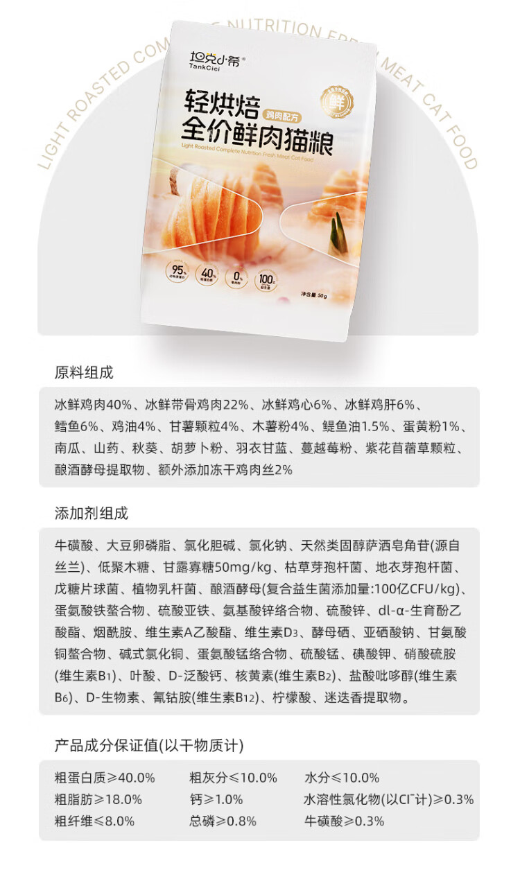 Tank Xiaoxi Cat Food Lightly Baked Full Price Grain-Free Fresh Chicken Nutritional Conditioning Gastrointestinal Trial Trial Adult Kitten Cat Food 200g