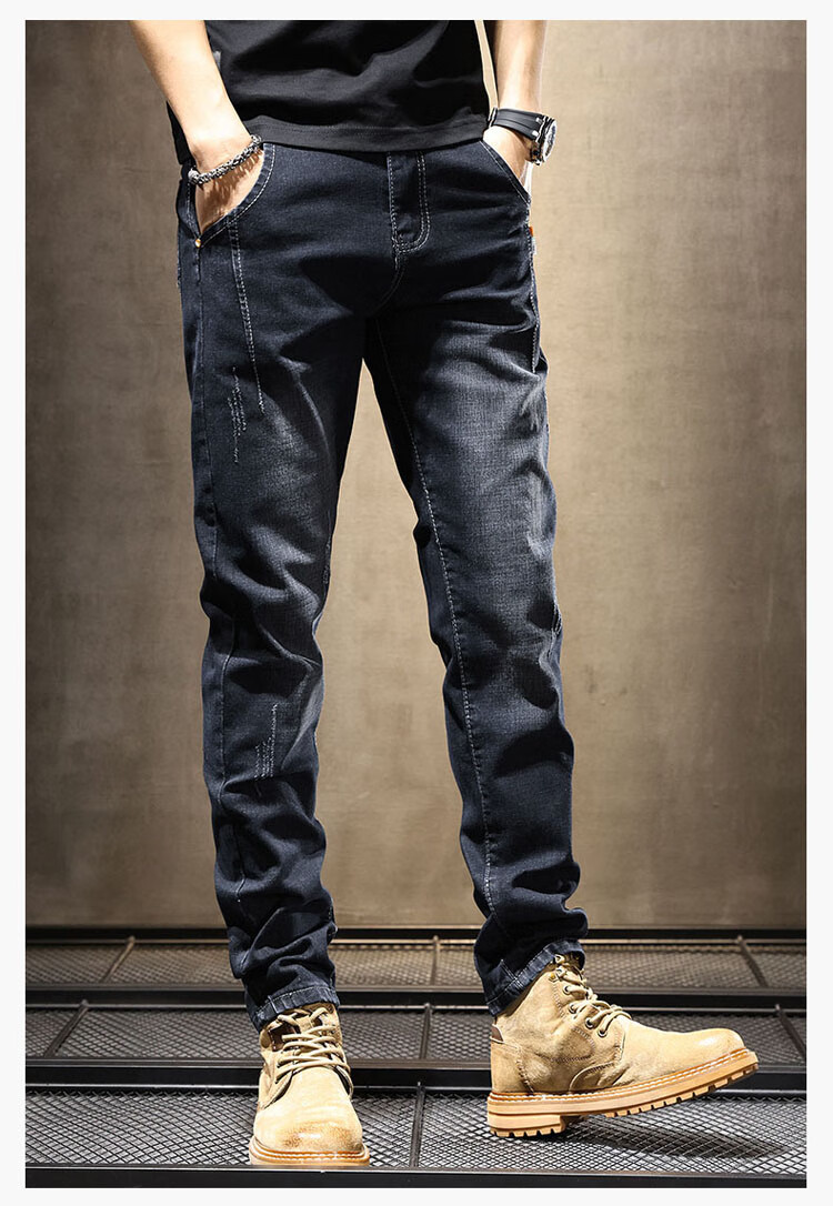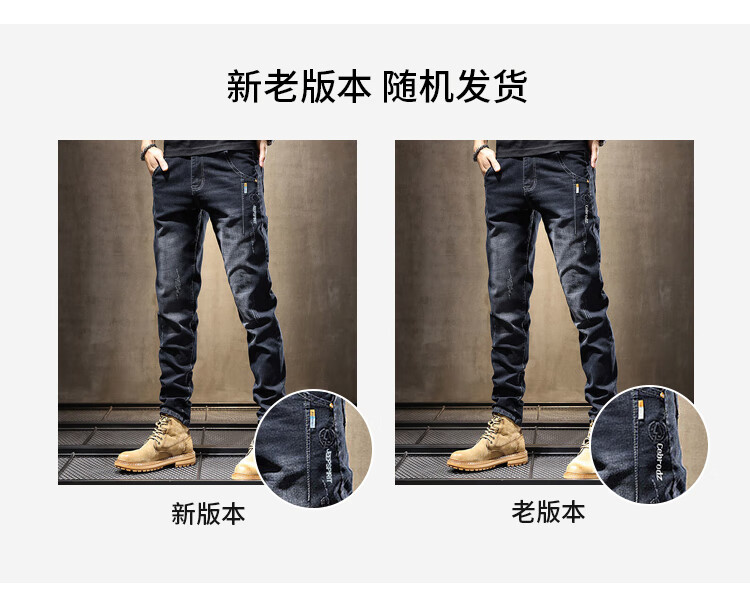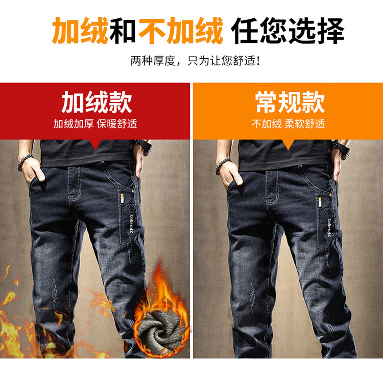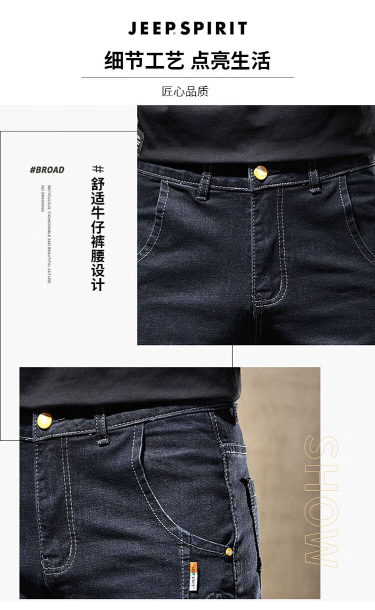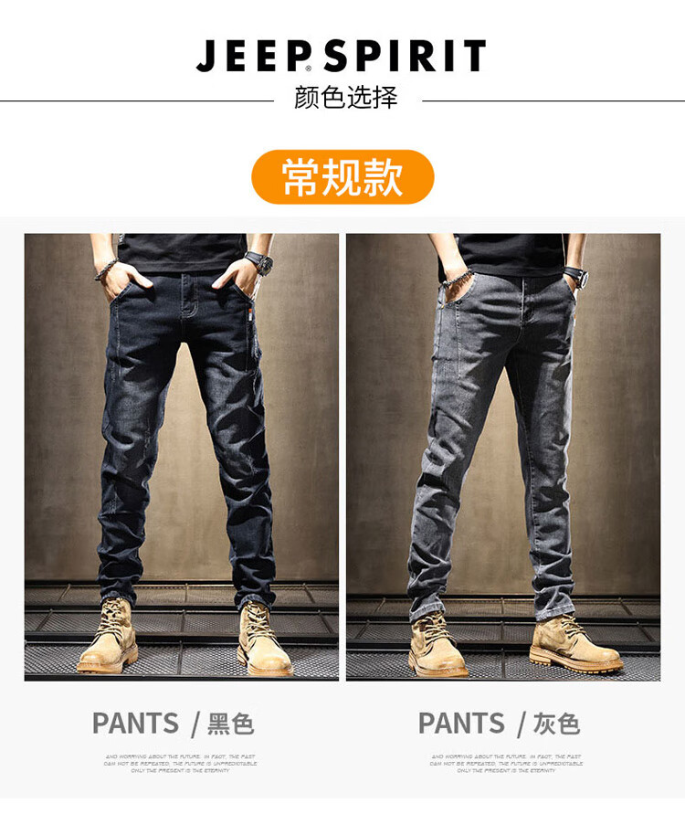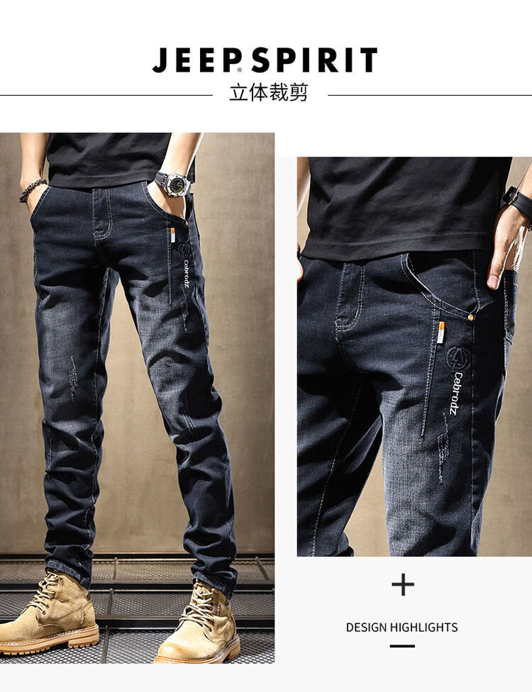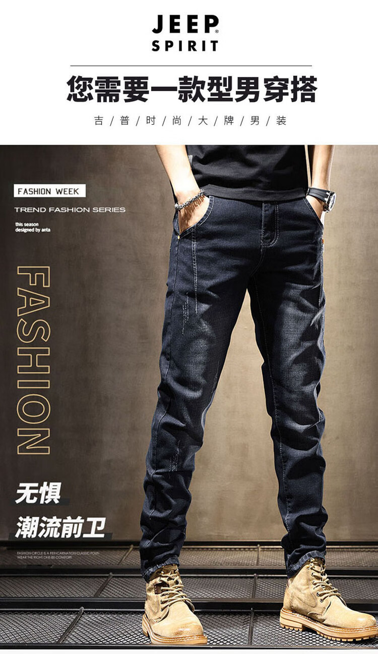 JEEP SPIRIT Jeep jeans men's autumn and winter elastic slim casual pants new retro resurgence pants black 33