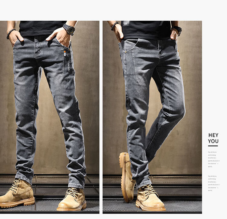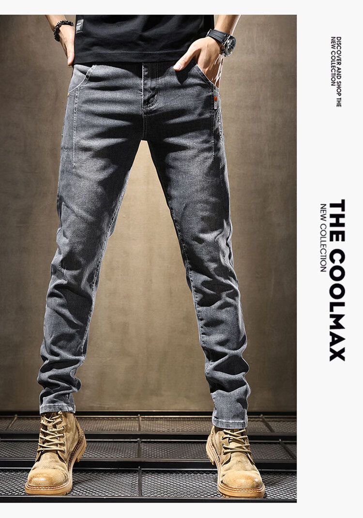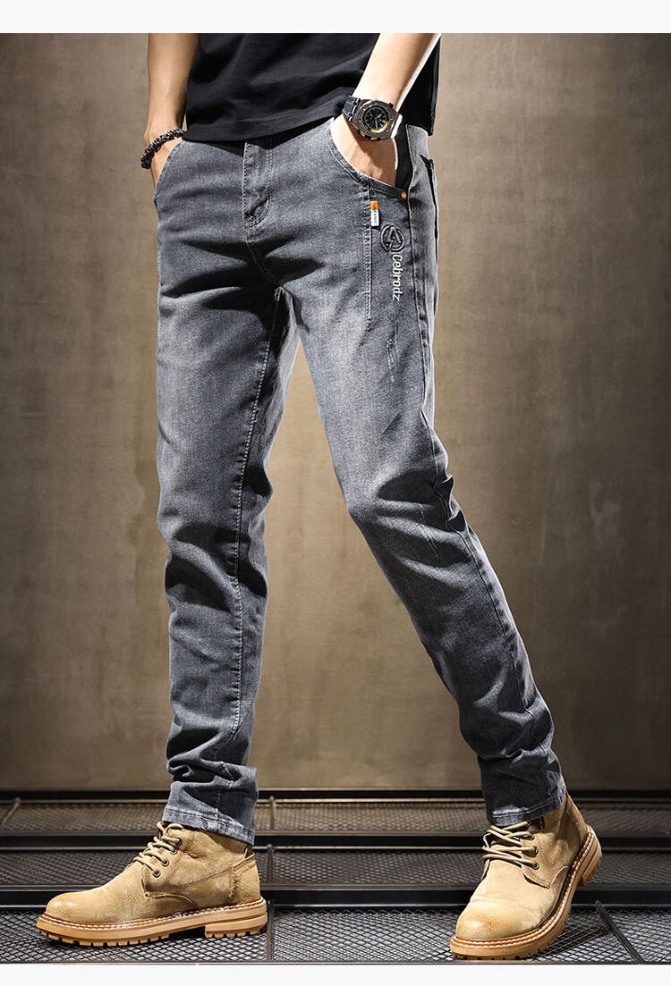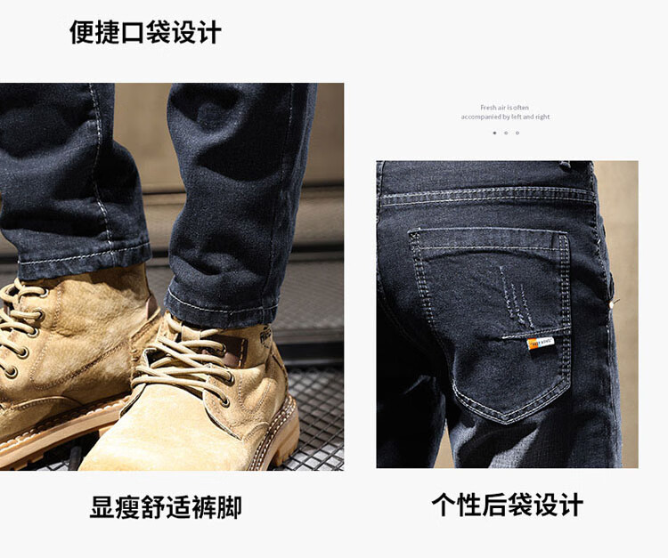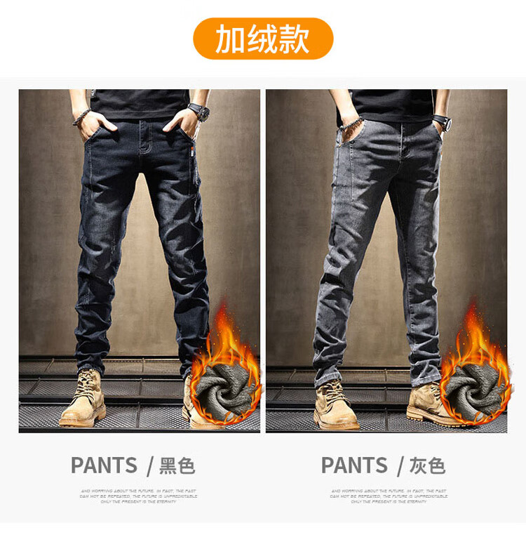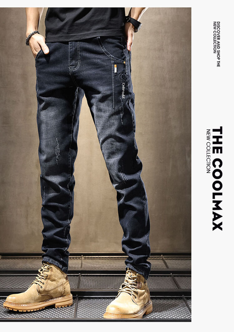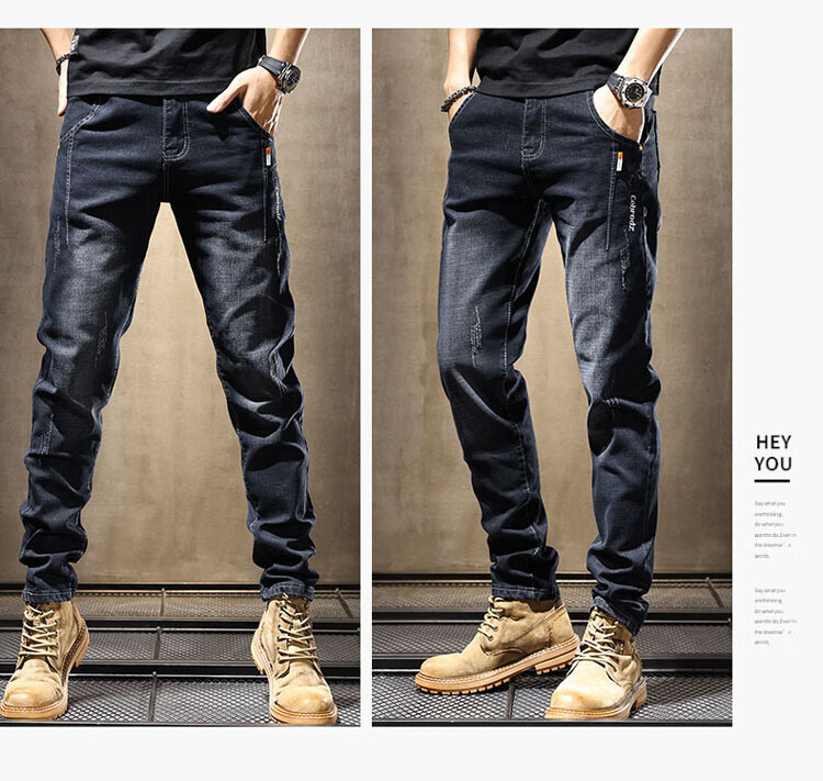 JEEP SPIRIT Jeep jeans men's autumn and winter elastic slim casual pants new retro resurgence pants black 33