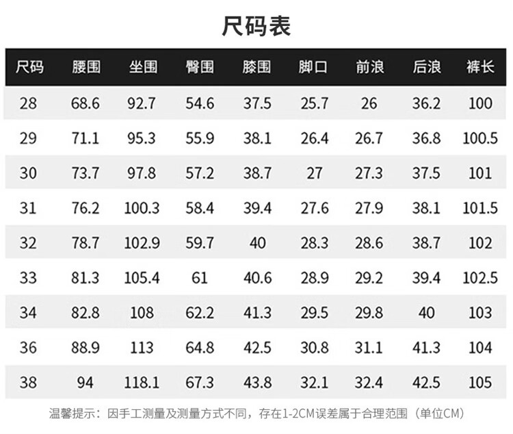 USA(inch) 28-30 30-32 32-34 34-38 38-42