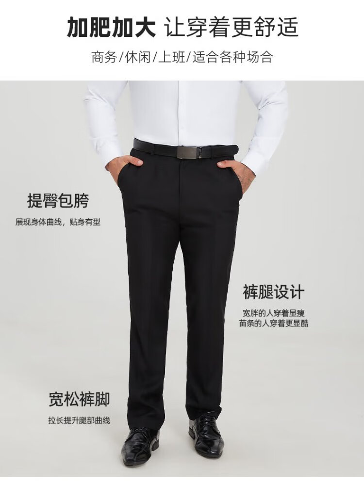Dibinze plus size business formal trousers men's plus size loose straight black suit trousers black 6XL
