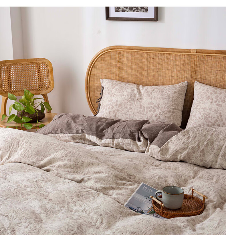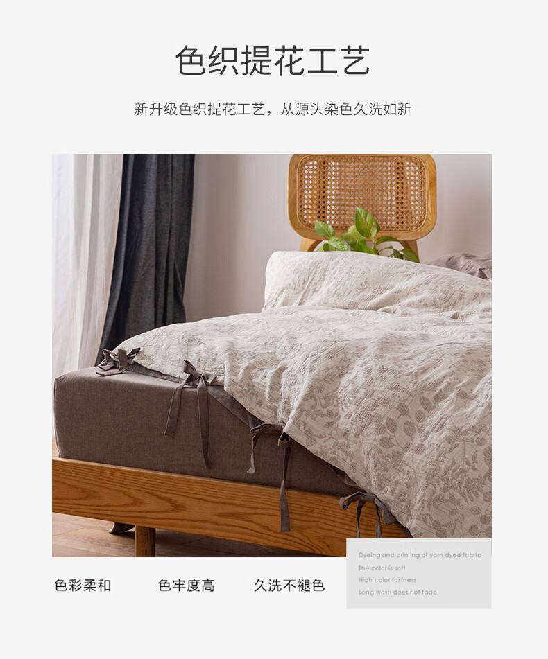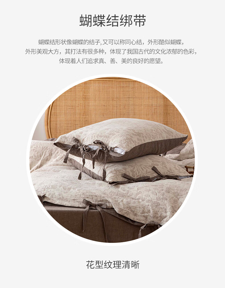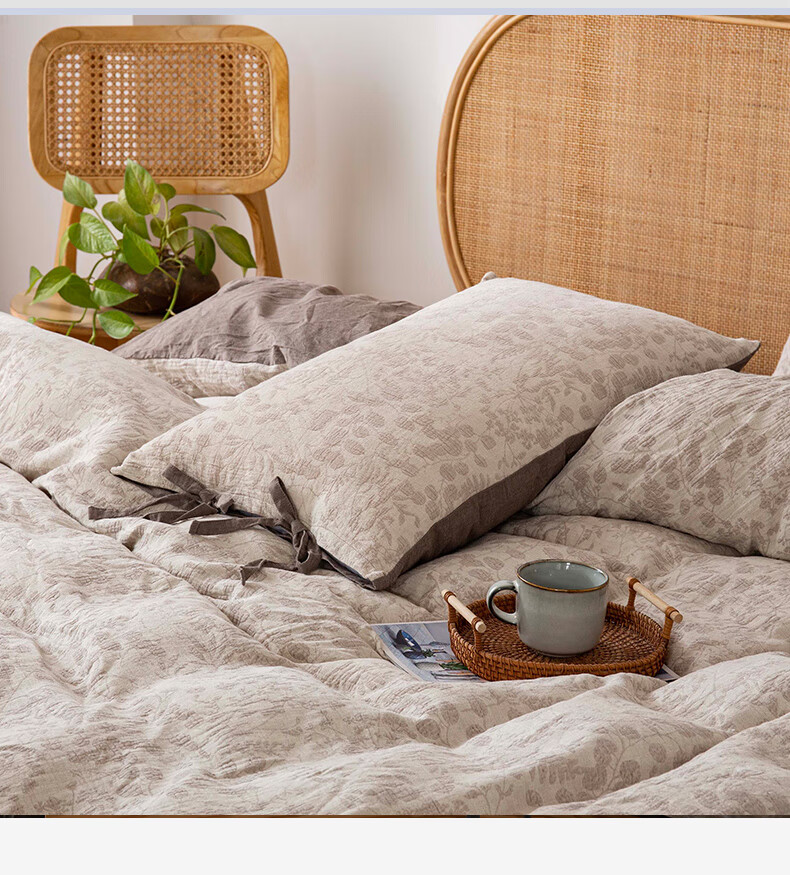 Landu double-layer yarn four-piece set of pure cotton high-end yarn-dyed jacquard bed pure cotton quilt cover sheets Gardenia Coffee
