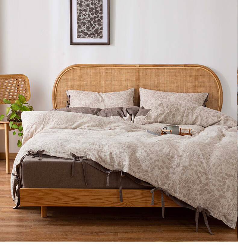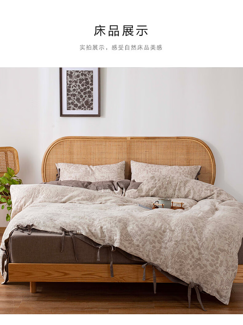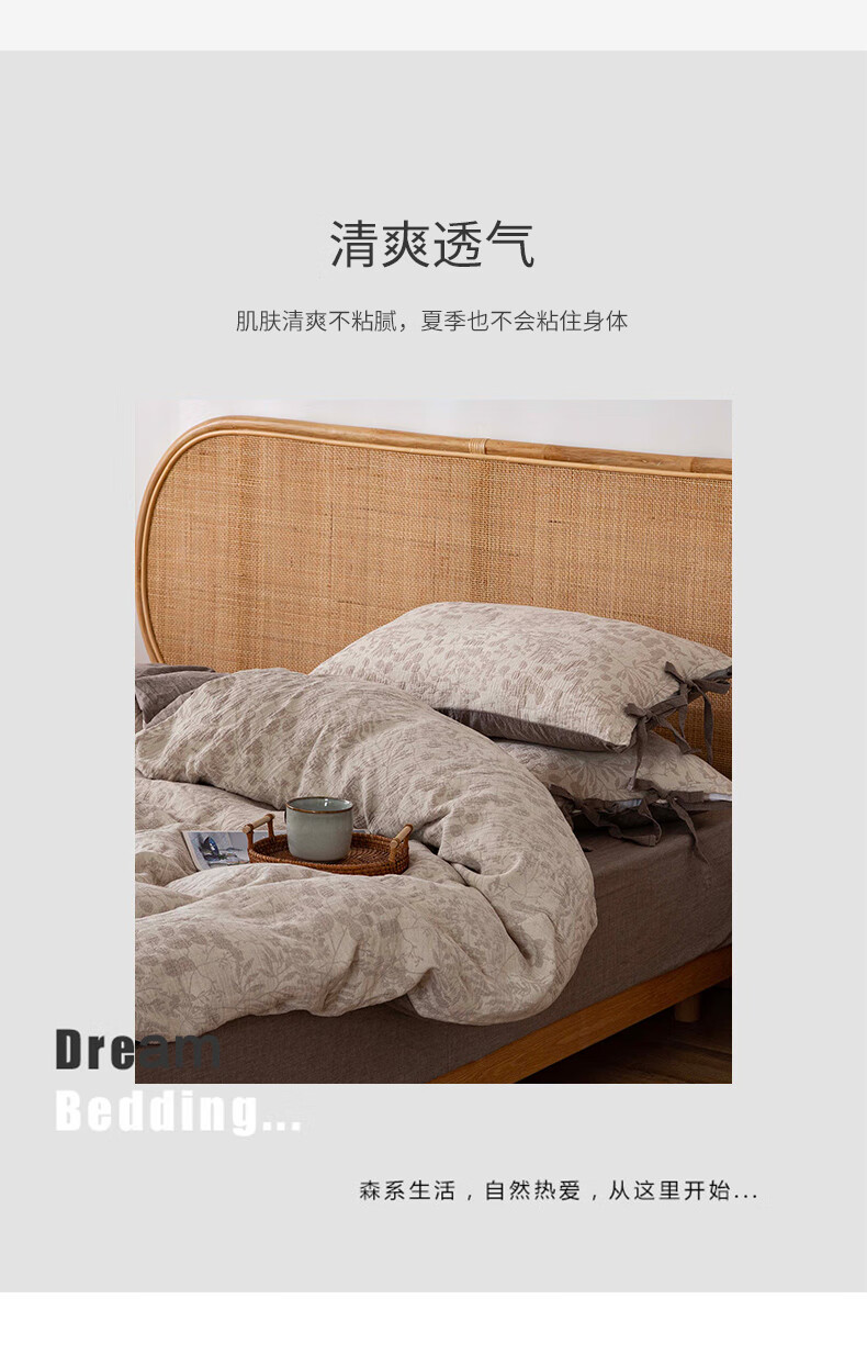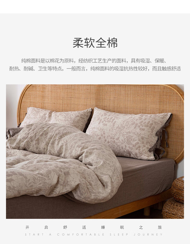 Landu double-layer yarn four-piece set of pure cotton high-end yarn-dyed jacquard bed pure cotton quilt cover sheets Gardenia Coffee