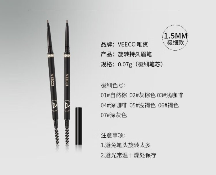 VEECCI automatic rotating double-headed diamond-shaped eyebrow pencil waterproof and sweat-proof VZ05# brown