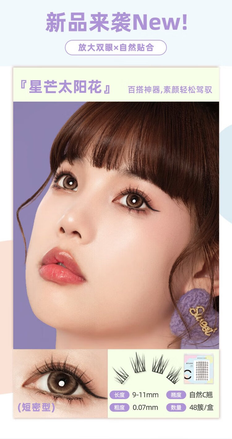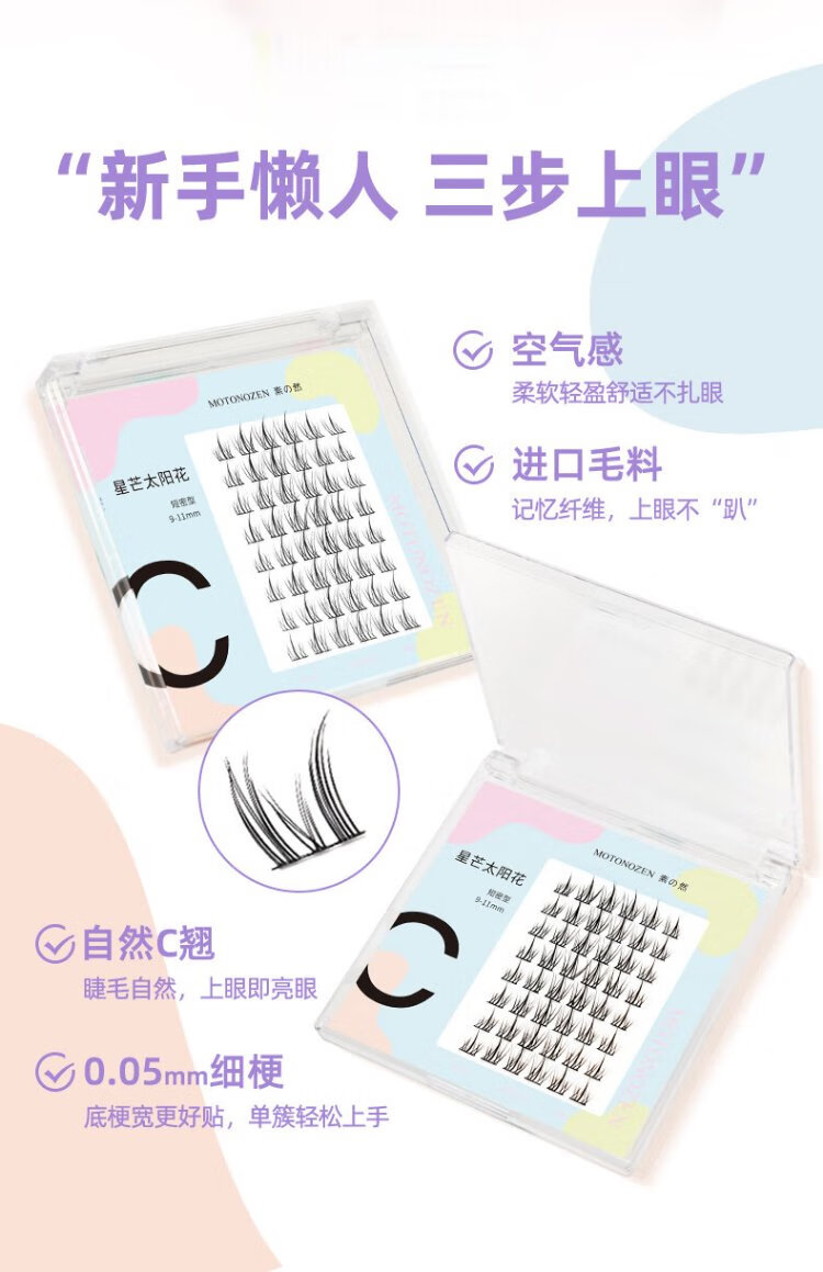 MOTONOZEN Sunflower False Eyelashes Single Cluster Lazy Trilogy Natural Segmented Self-Adhesive Grafting Gift for Girlfriend on Chinese Valentine's Day