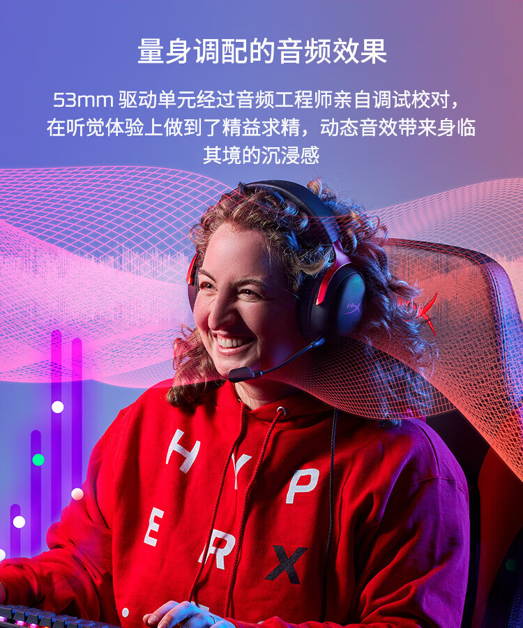 Extremely Unknown (HYPERX) Cloud Hurricane 3 Wired Black and Red DTS Audio 53mm Driver Unit E-Sports Gaming Headset Adapted to Delta Operations