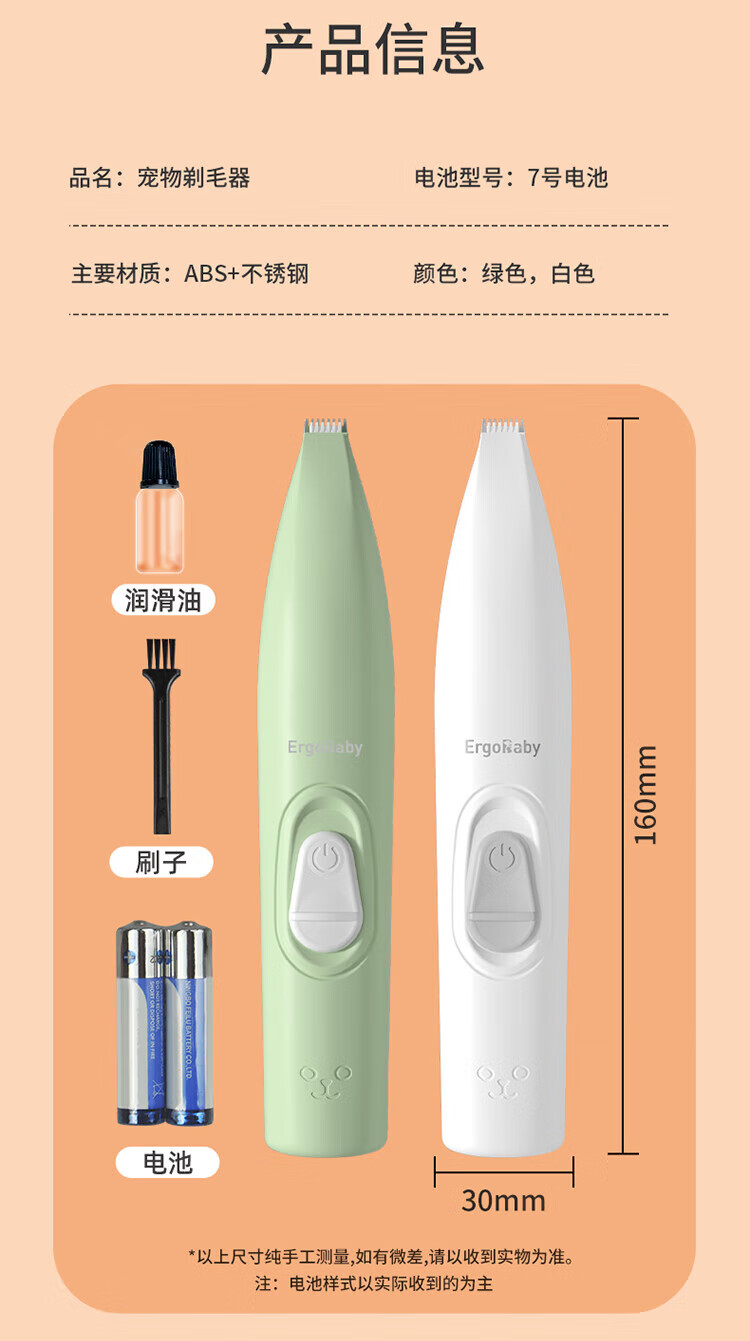 ERGOBABY pet electric clipper dog shaver cat foot shaver cat foot hair trimmer electric clipper battery model green