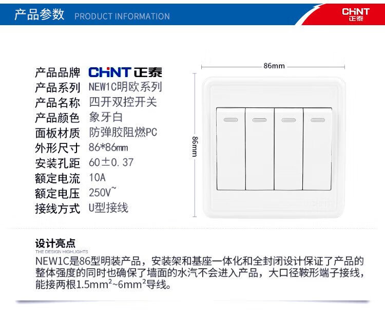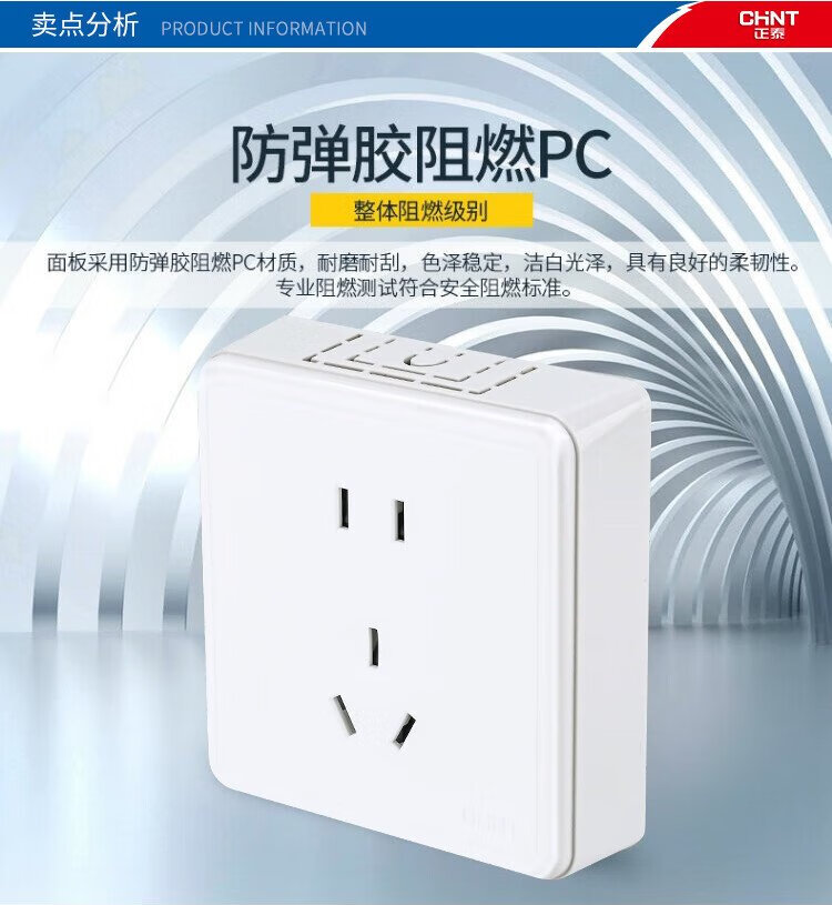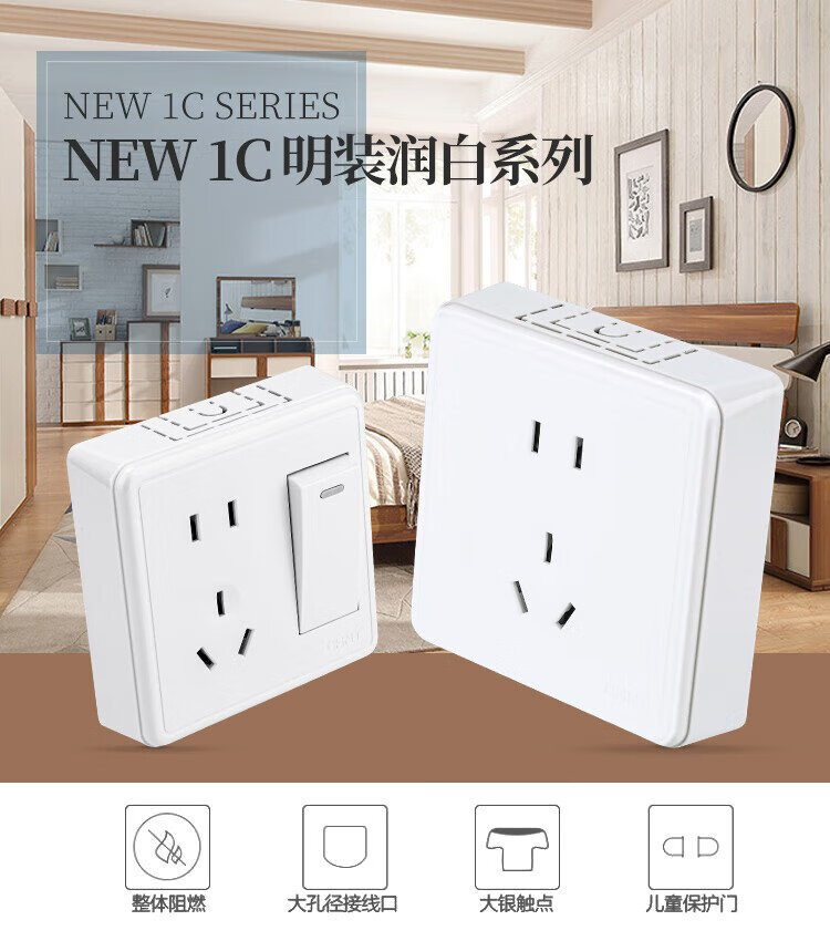 Chint (CHNT) NEW1-C00100A exposed switch socket wall panel exposed box installation positive five-hole two-three plug 86 type elegant white NEW1C/one open single control