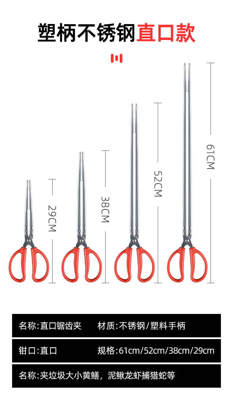 Zhenyou (Grsaed) eel clip stainless steel multi-functional non-slip loach clip crab clip 52cm straight head extended lobster claw to control fish