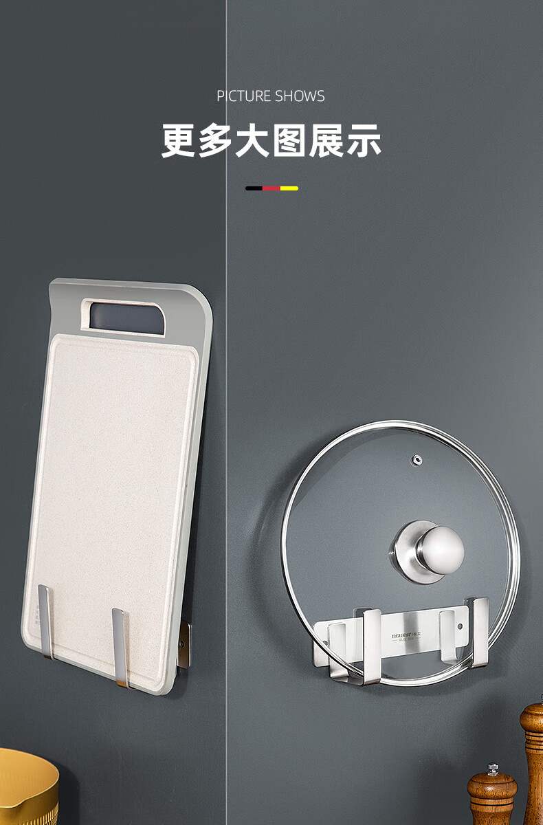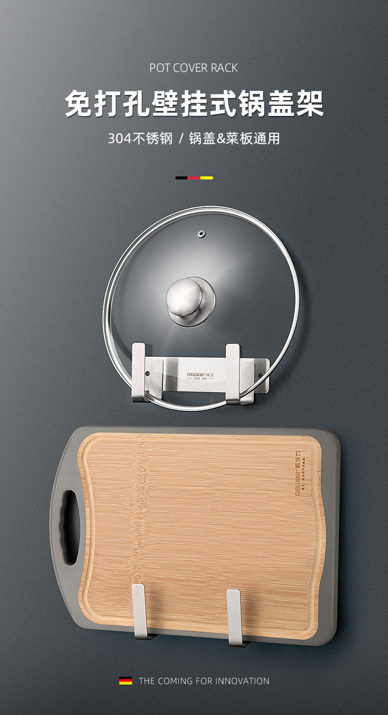 Newair 304 pot lid rack cutting board rack wall-mounted punch-free kitchen storage rack chopping board chopping board rack storage artifact