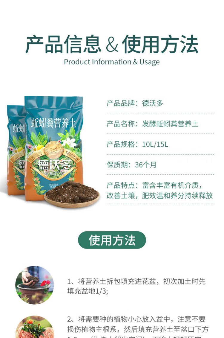 Devodoro earthworm manure nutrient soil 15L gardening green plant flower soil cauliflower fertilizer green plant organic decomposed fermented planting soil