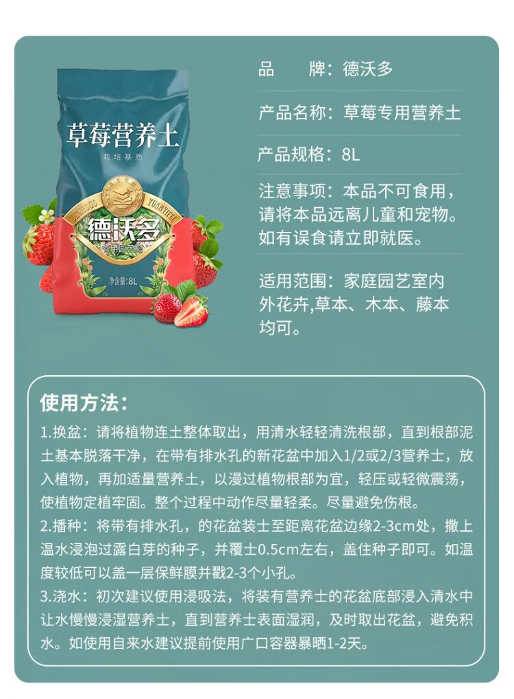 Devodo Strawberry Special Nutrient Soil 8L Gardening Green Planting Fruits and Vegetables Organic Soil Balcony Potted Farmhouse Planting Soil