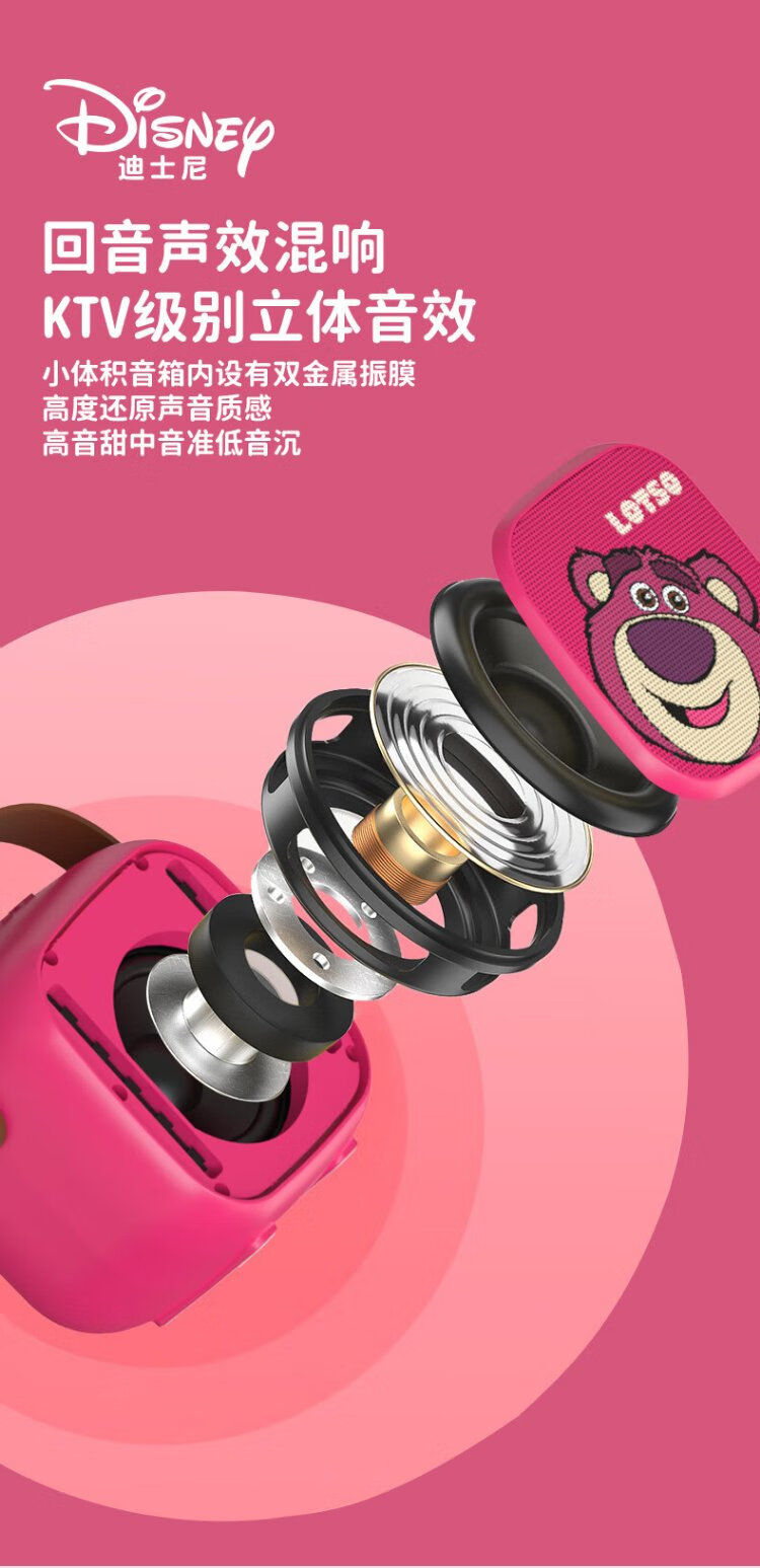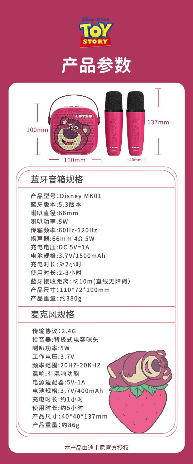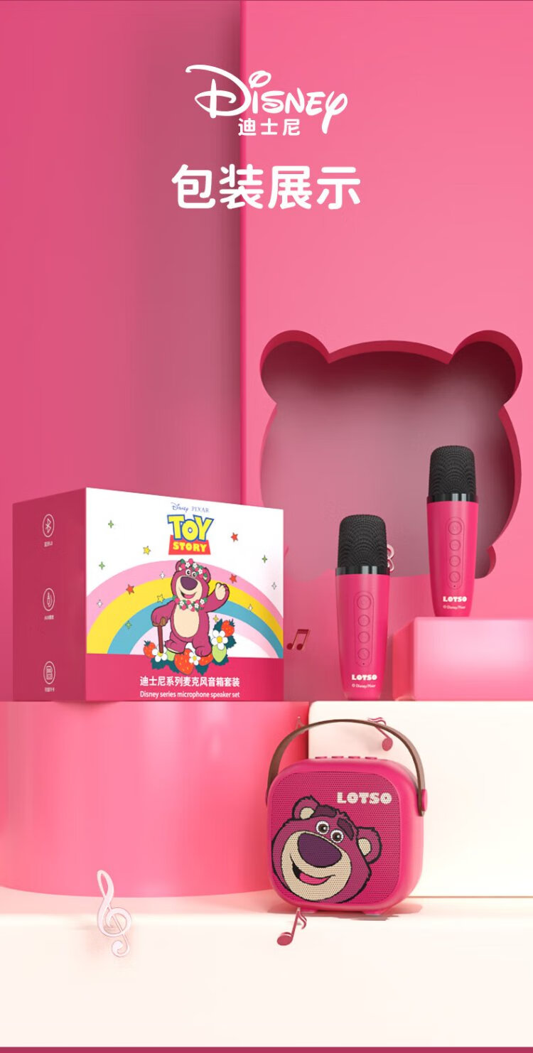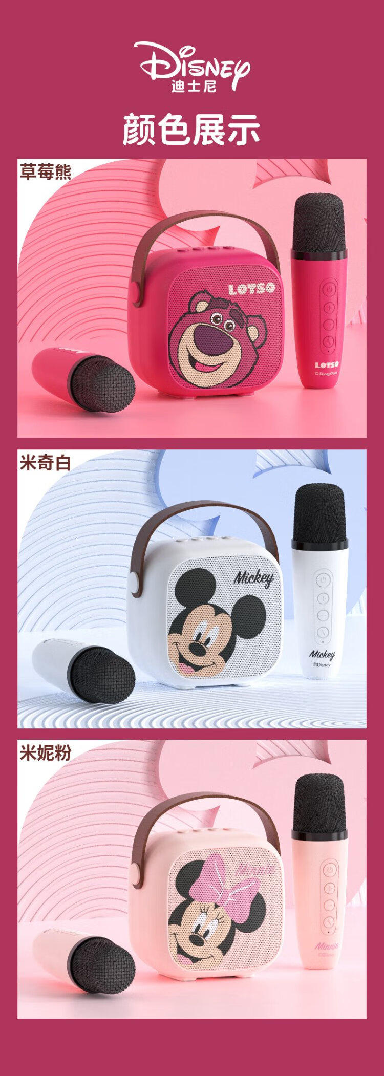 Disney (DISNEY) K-song microphone speaker integrated children's microphone wireless Bluetooth audio speaker Xiaodu smart voice boys and girls birthday gift gift box family ktv MK01 Strawberry Bear