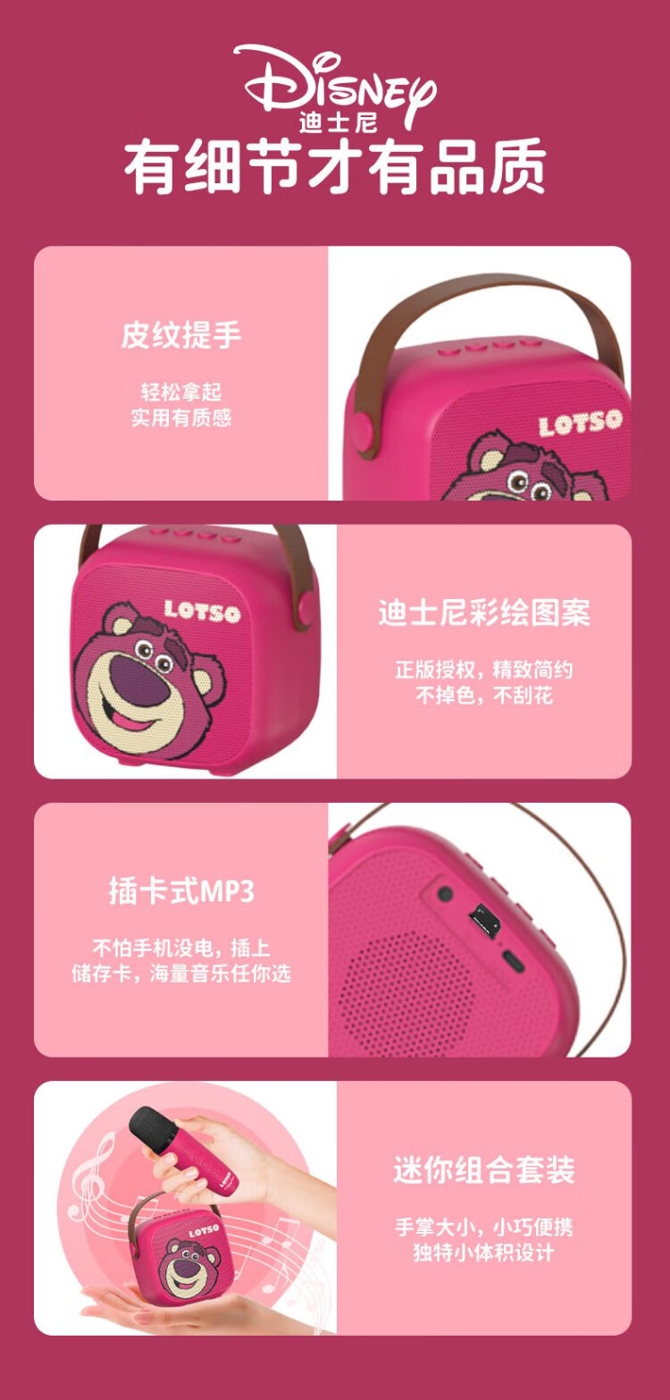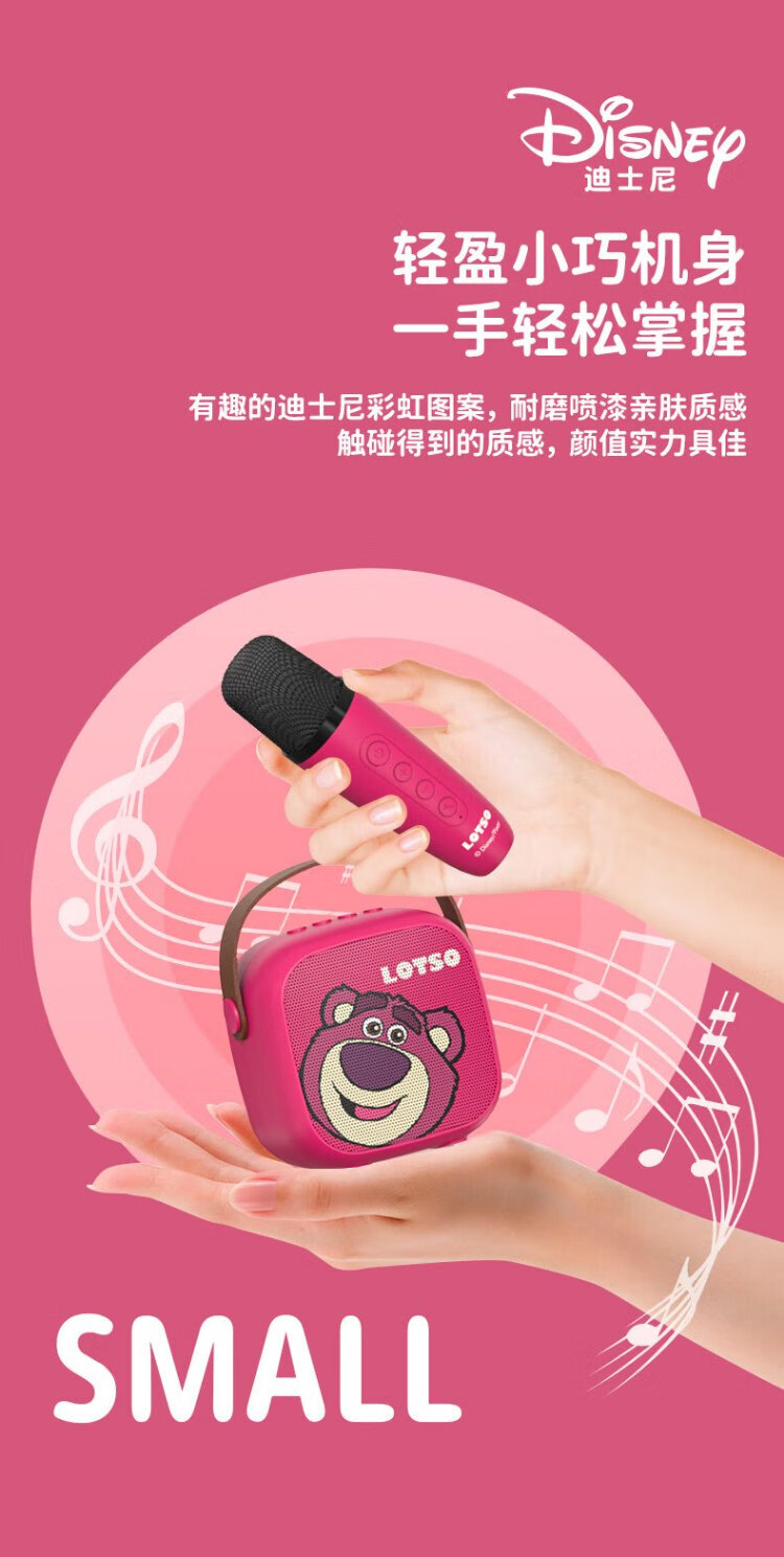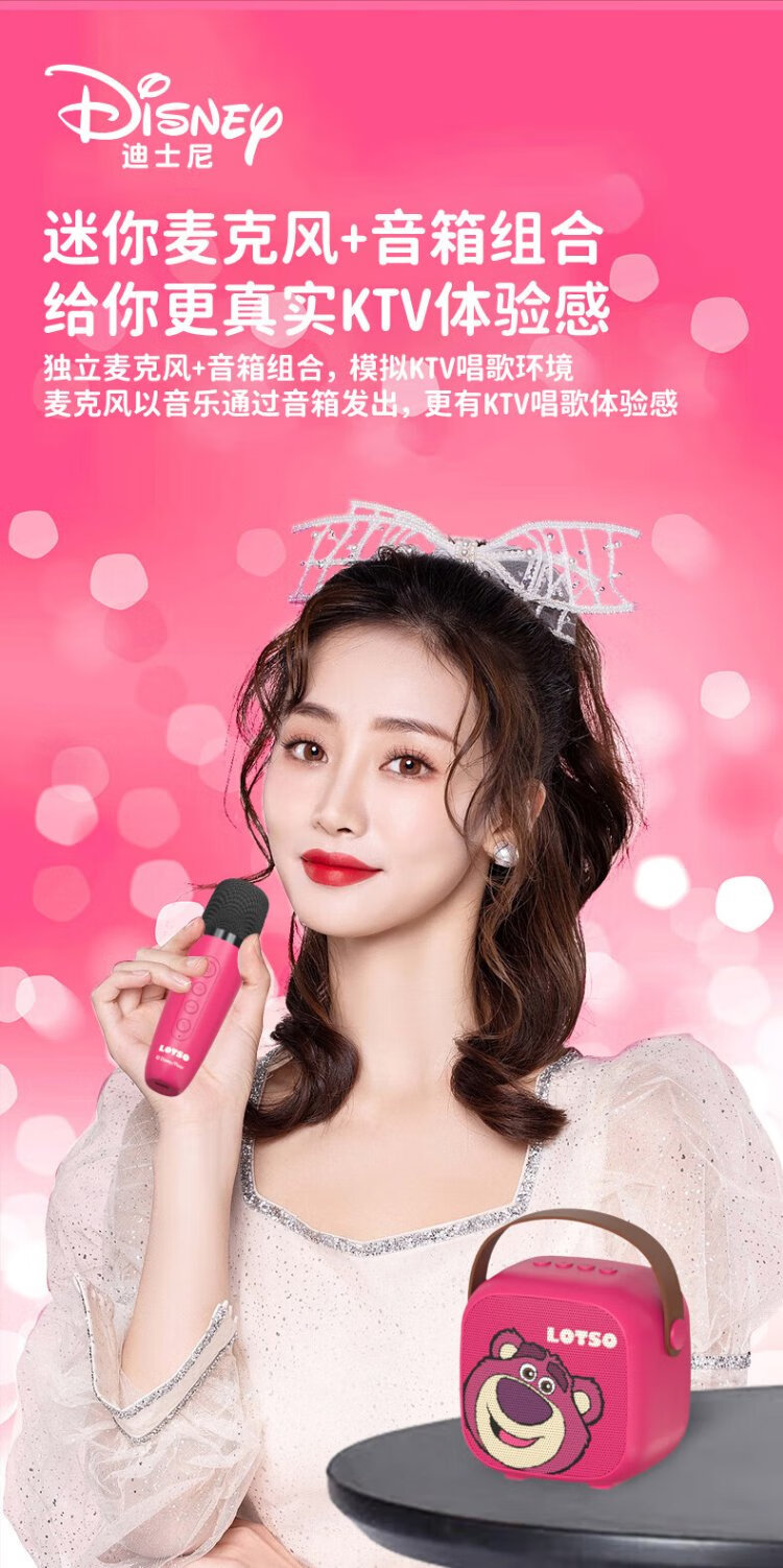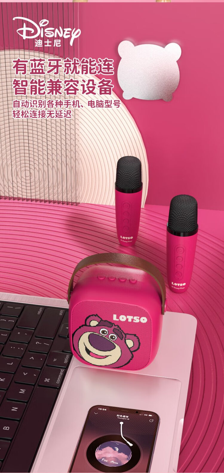 Disney (DISNEY) K-song microphone speaker integrated children's microphone wireless Bluetooth audio speaker Xiaodu smart voice boys and girls birthday gift gift box family ktv MK01 Strawberry Bear