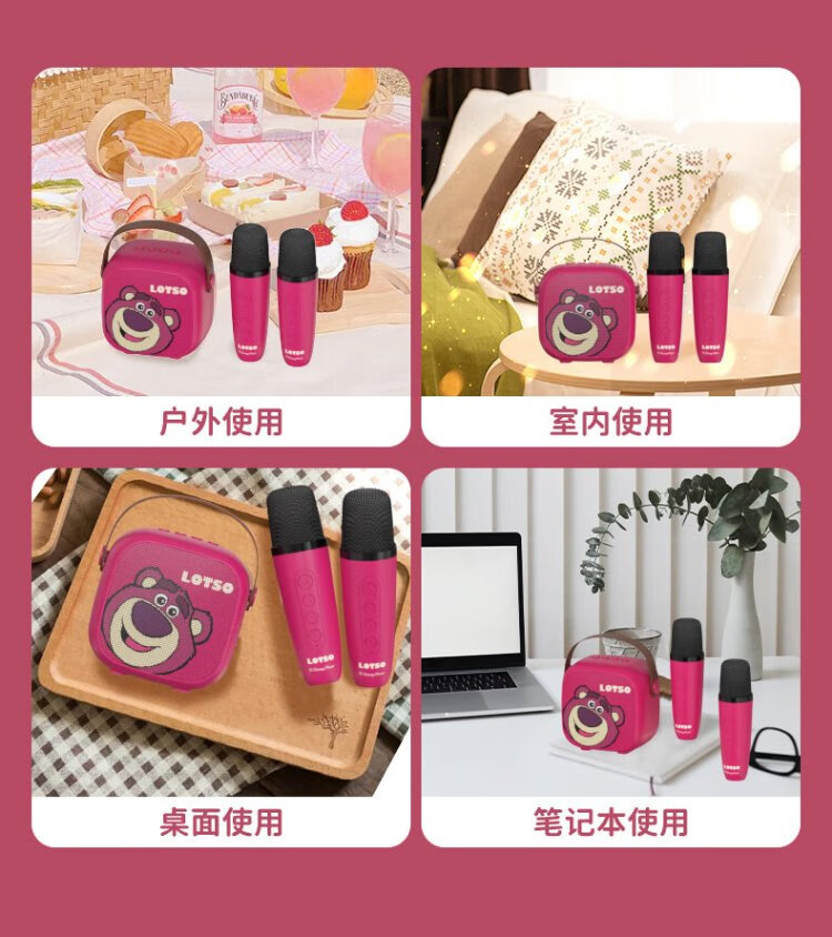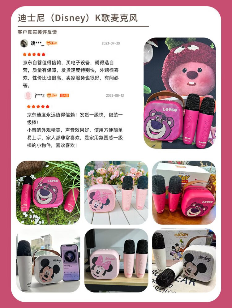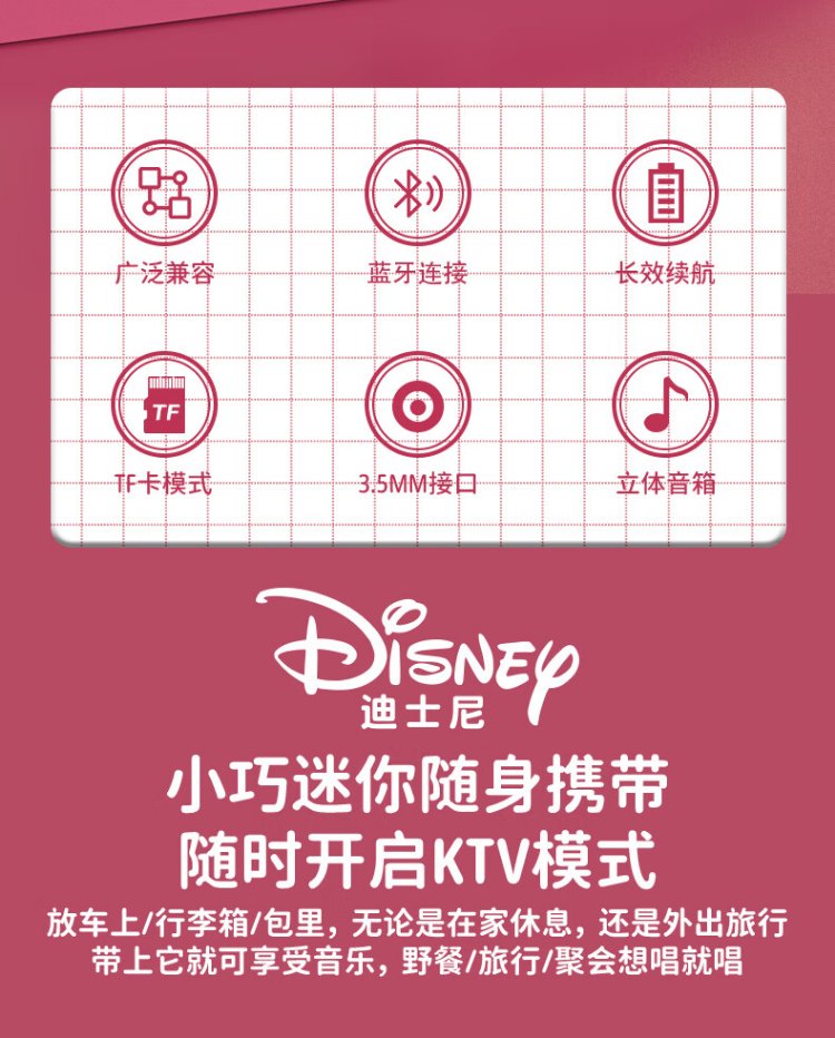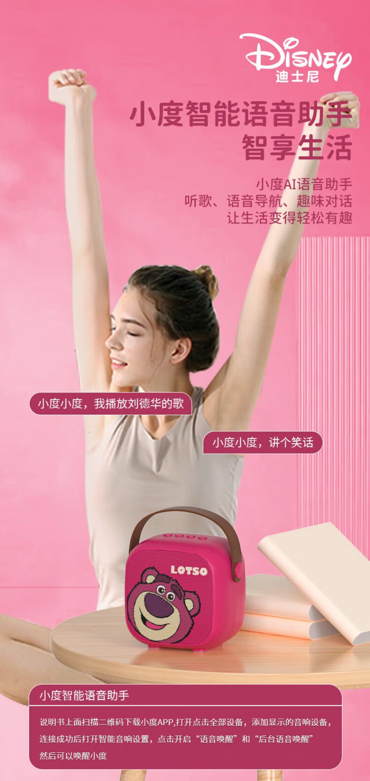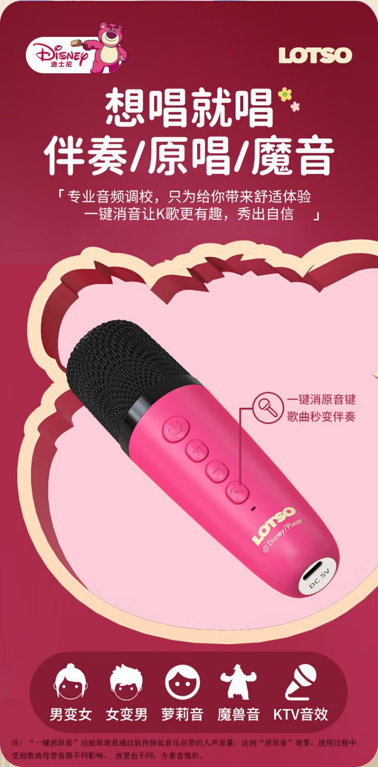 Disney (DISNEY) K-song microphone speaker integrated children's microphone wireless Bluetooth audio speaker Xiaodu smart voice boys and girls birthday gift gift box family ktv MK01 Strawberry Bear