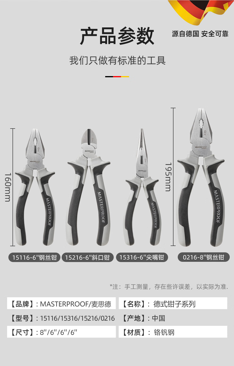 MASTERPROOF professional-grade needle-nose pliers, electrician's pliers, household labor-saving multi-functional pliers, 6-inch mini small wire cutter, broken wire