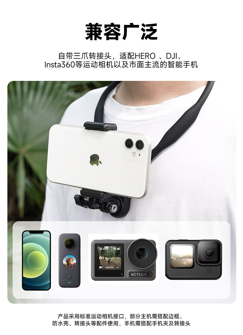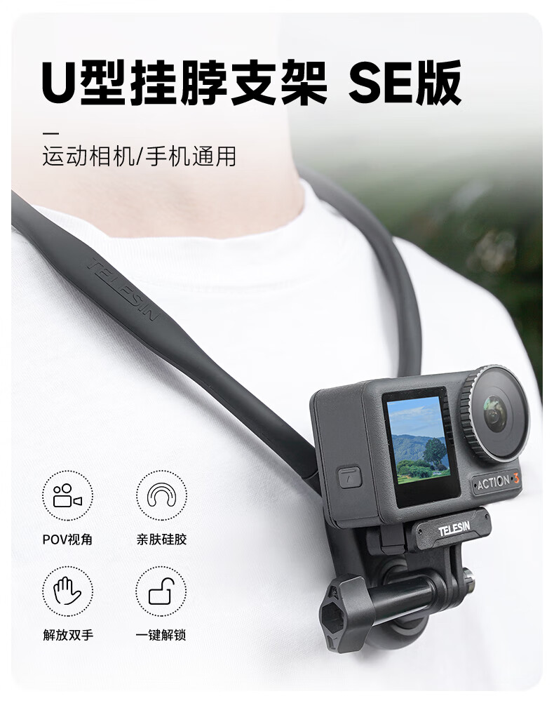 TELESIN (Taixun) DJI action5 hanging neck action4 nano adapts to gopro13 hanging neck shadow stone sports camera hanging neck bracket outdoor riding fishing shooting bracket