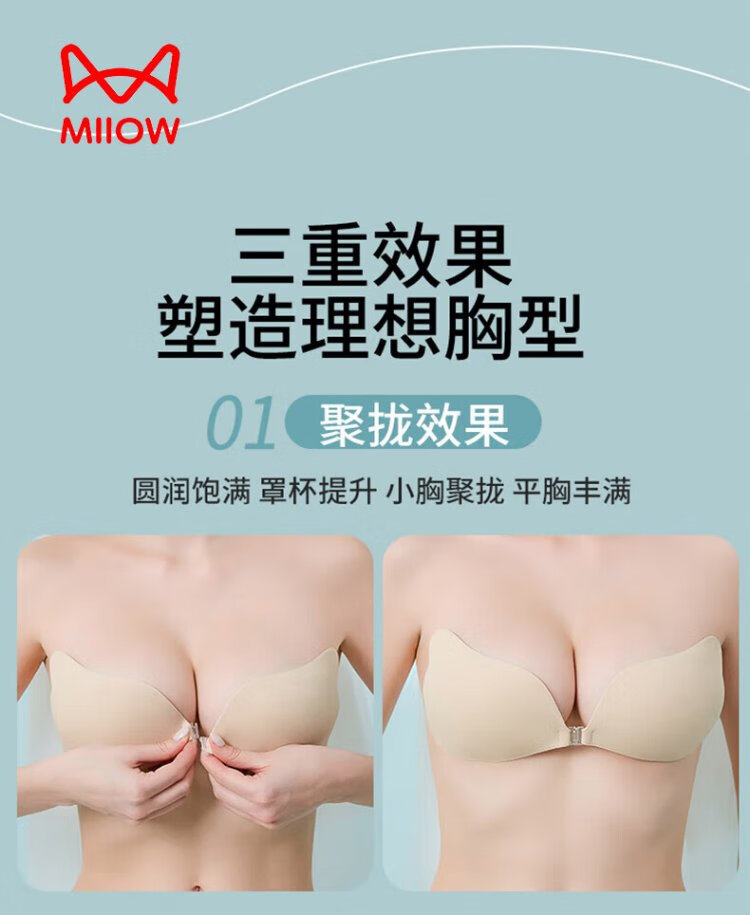 MiiOW breast patch female wedding dress invisible bra push-up breathable non-slip swimsuit underwear large and small breast anti-bulge