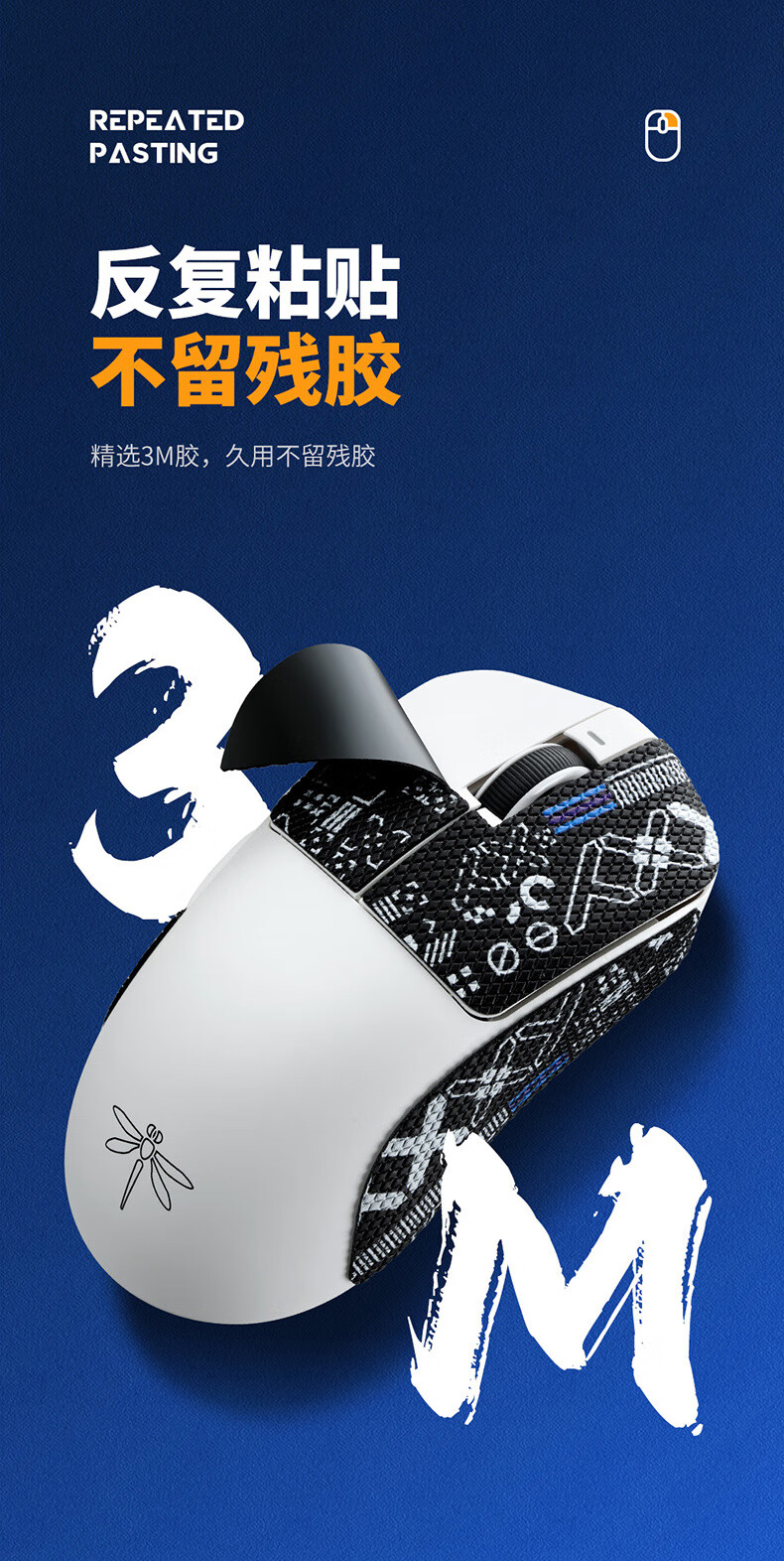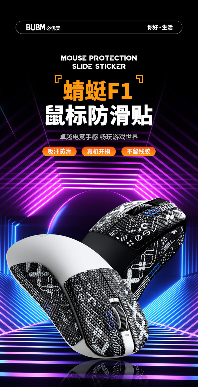 BUBM VGN Dragonfly F1 mouse anti-slip sticker, lizard skin film side anti-sweat absorbent sticker, e-sports game mouse sticker, Dragonfly F1 black