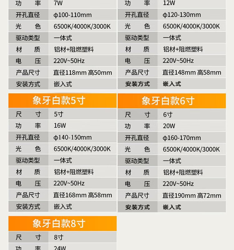 Foshan Lighting (FSL) LED downlight recessed ceiling light all aluminum all white 3 inches 6W opening 90-100mm warm white light (4000K)
