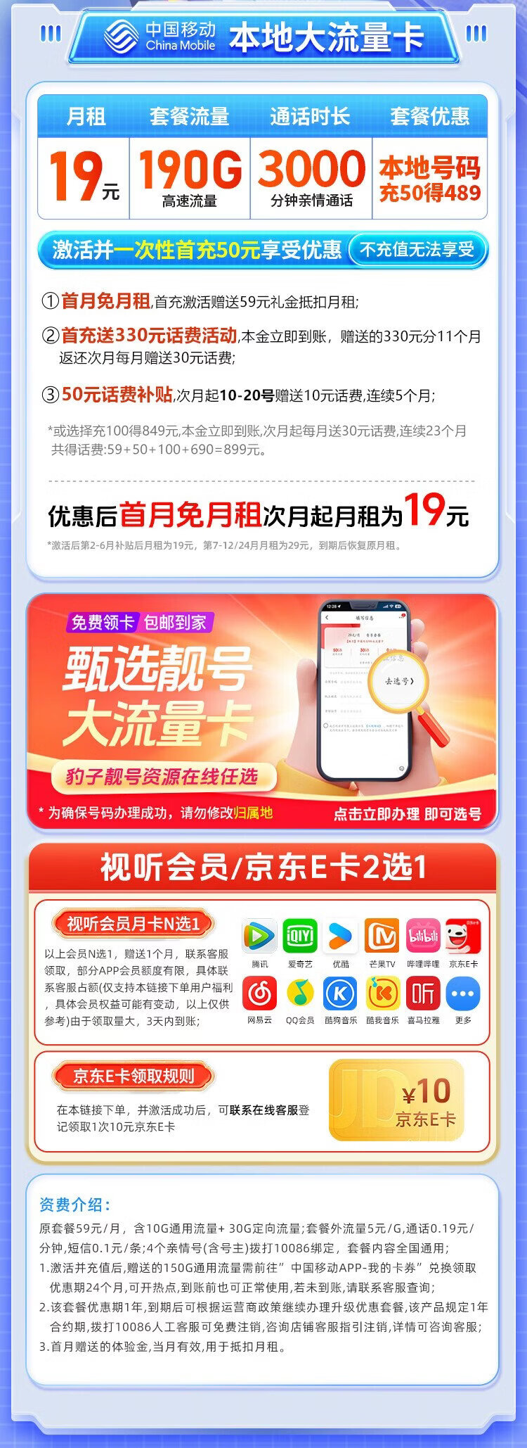 China Mobile data card 19 yuan Self-selected AAA number Large national universal phone card Long-term mobile phone number 5G pure Internet access non-unlimited permanent